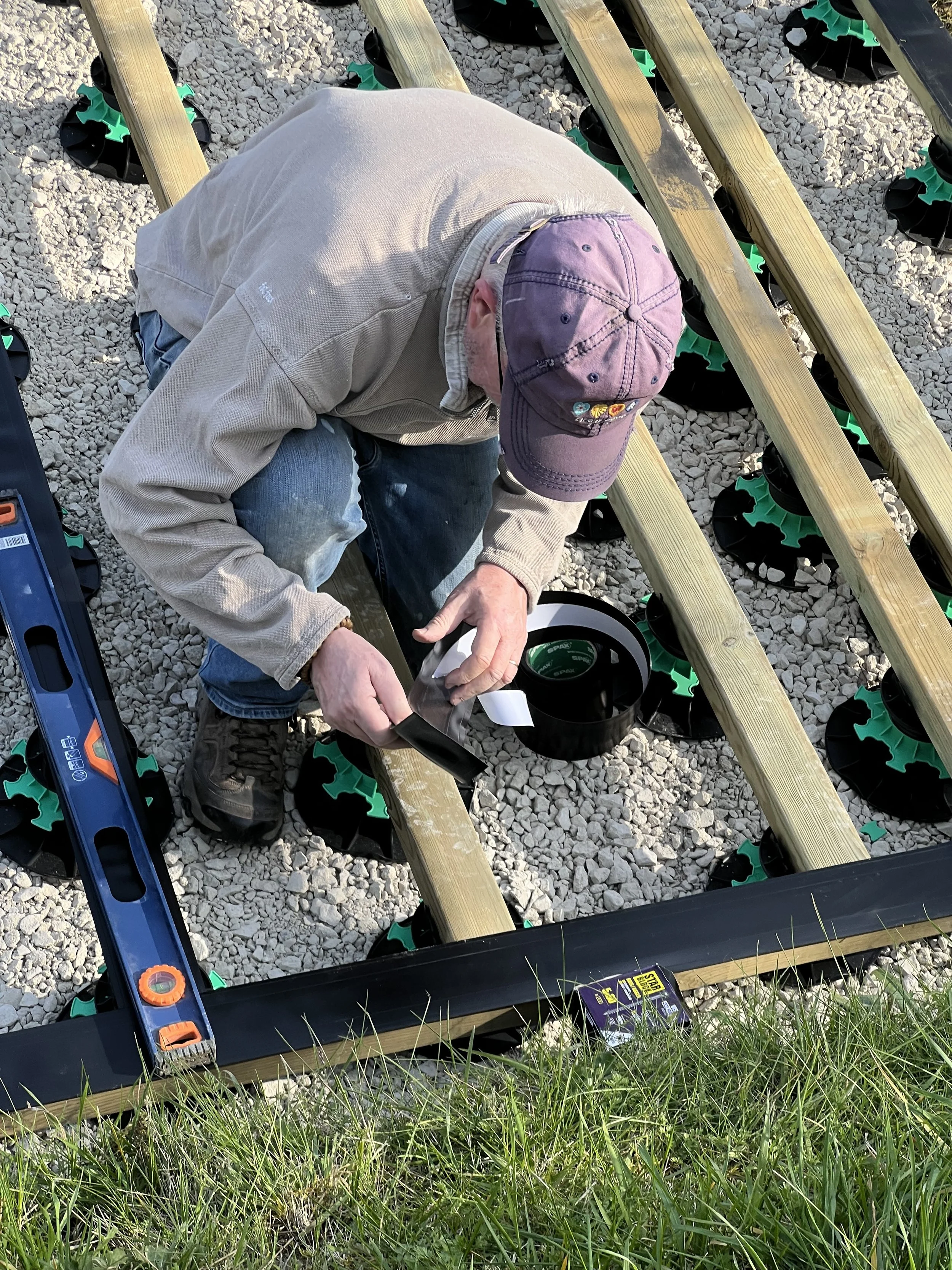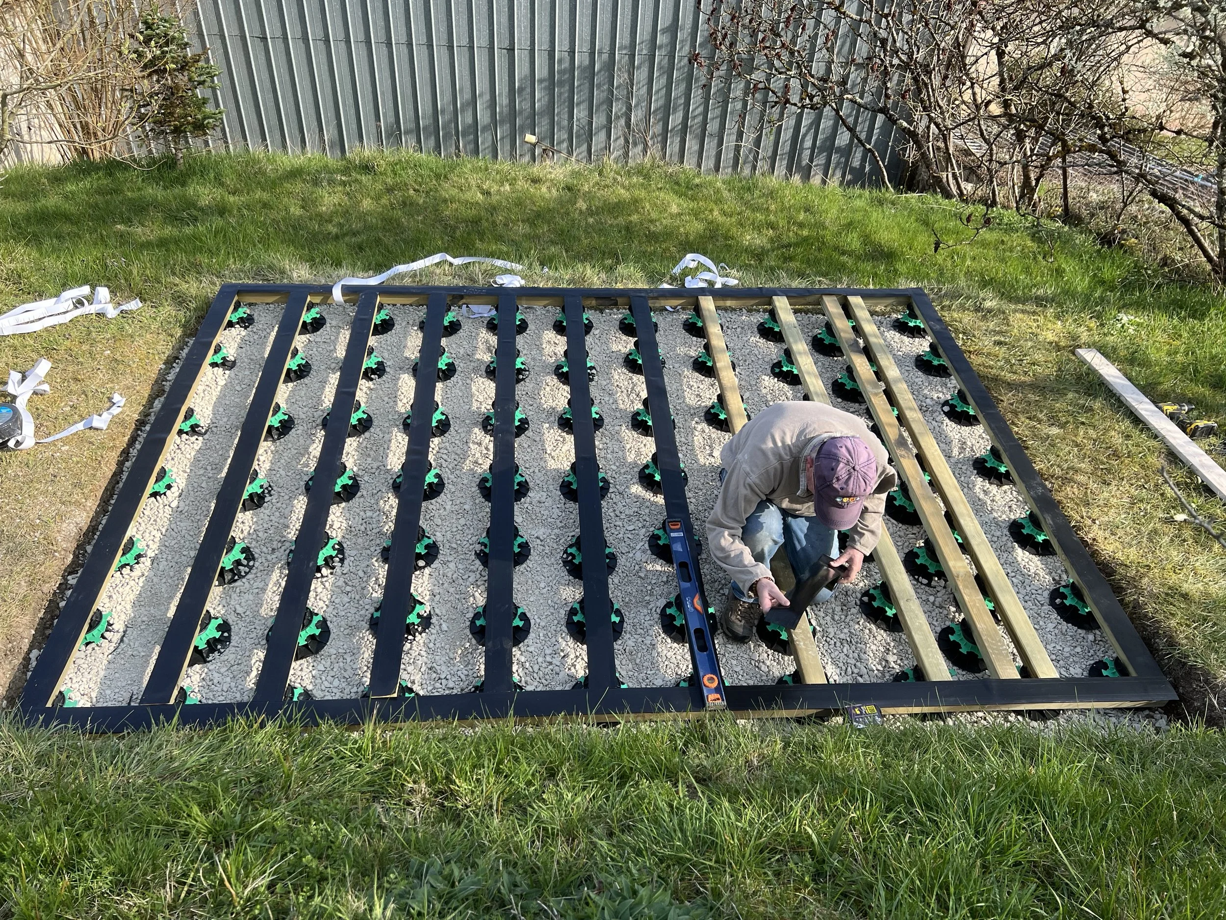 Brian took his time measuring and fixing the frame, to ensure that it wasn’t only the right size for the deck, but also square. He does this by measuring the length of the diagonals, which should be equal.