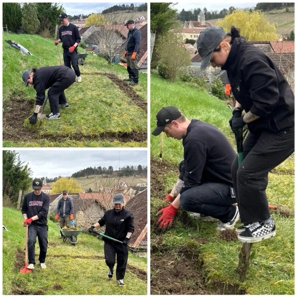 Our clay and limestone soil is not for the faint of heart though, and it took a lot of work just to get the grass layer stripped away, but they worked hard and got there eventually.