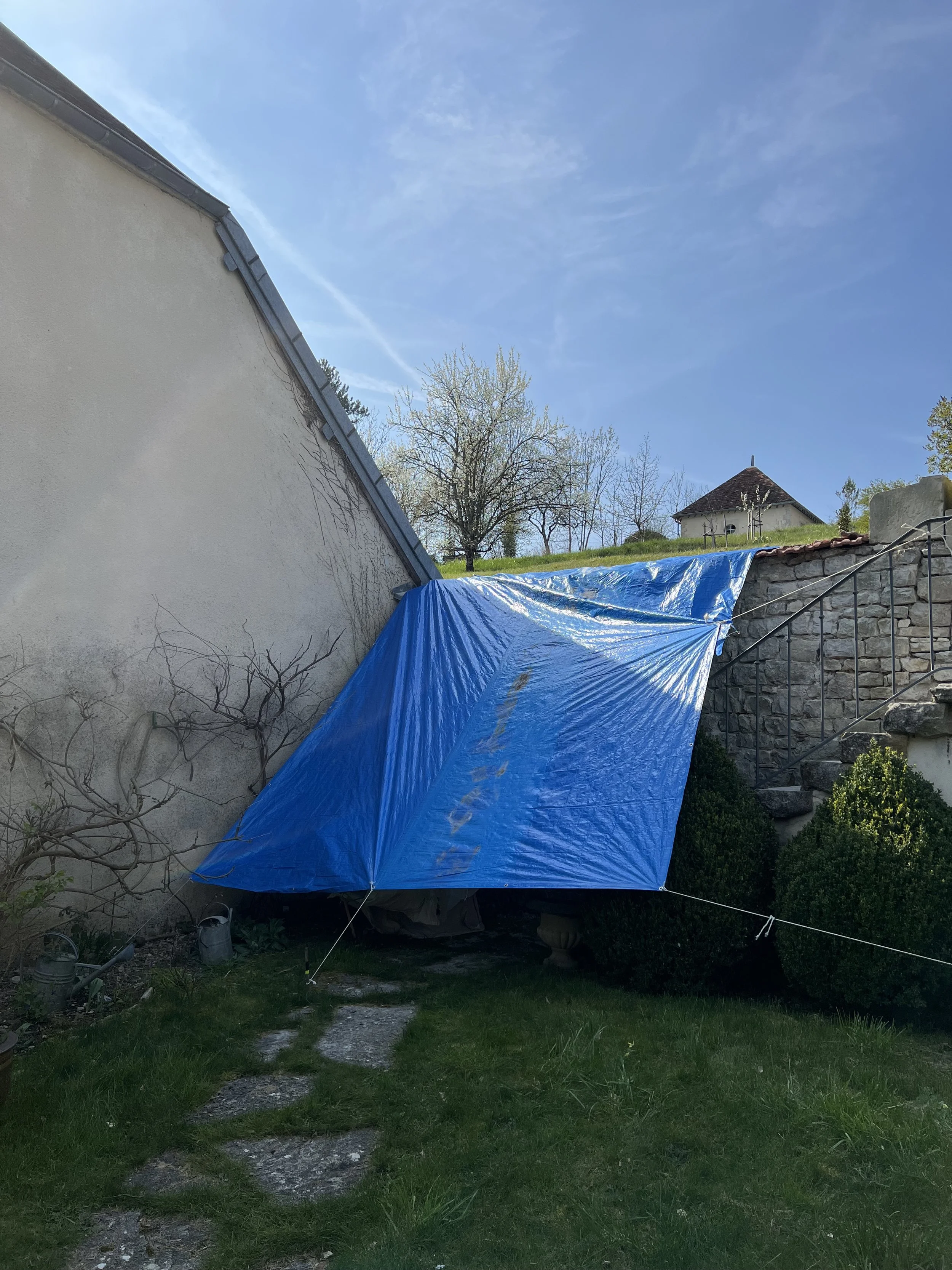 So that rain doesn’t stop their progress, they have put up a temporary tarpaulin to work under.