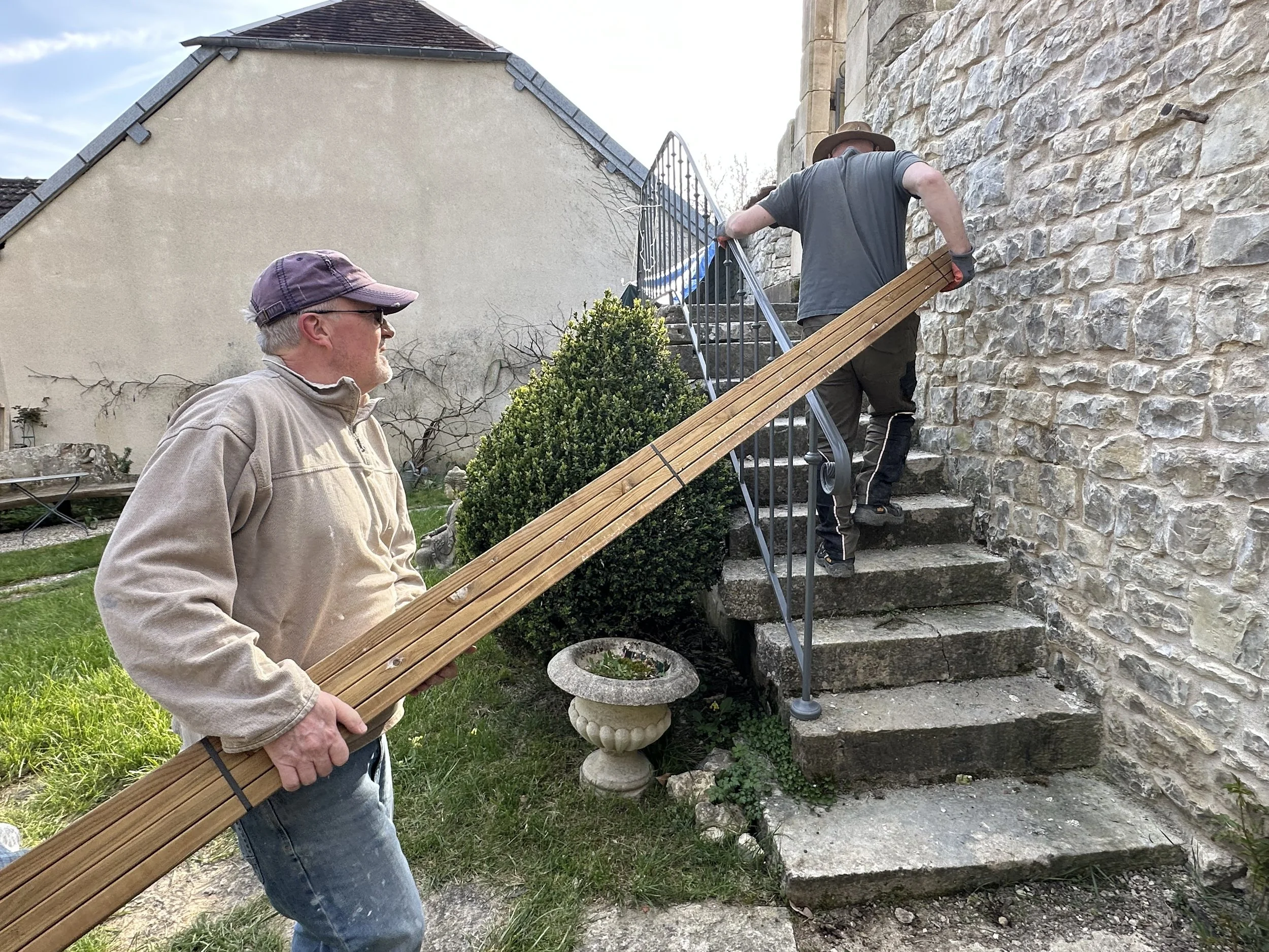 First though they needed to carry all the decking up to where it was needed. Having Chris helping out doing this was such a huge support for Brian.