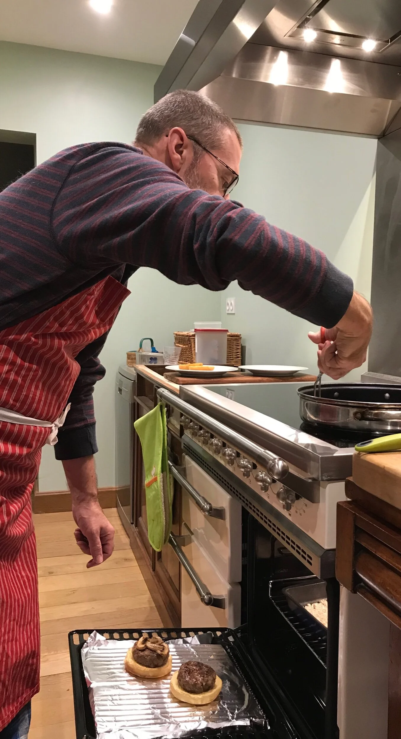 The second meal, which we had tonight, was burgers. Brian does make extremely good burgers, so we enjoyed those with a cheese and mushroom topping, and a glass or two of Chinon. A favourite red wine of ours at the moment.