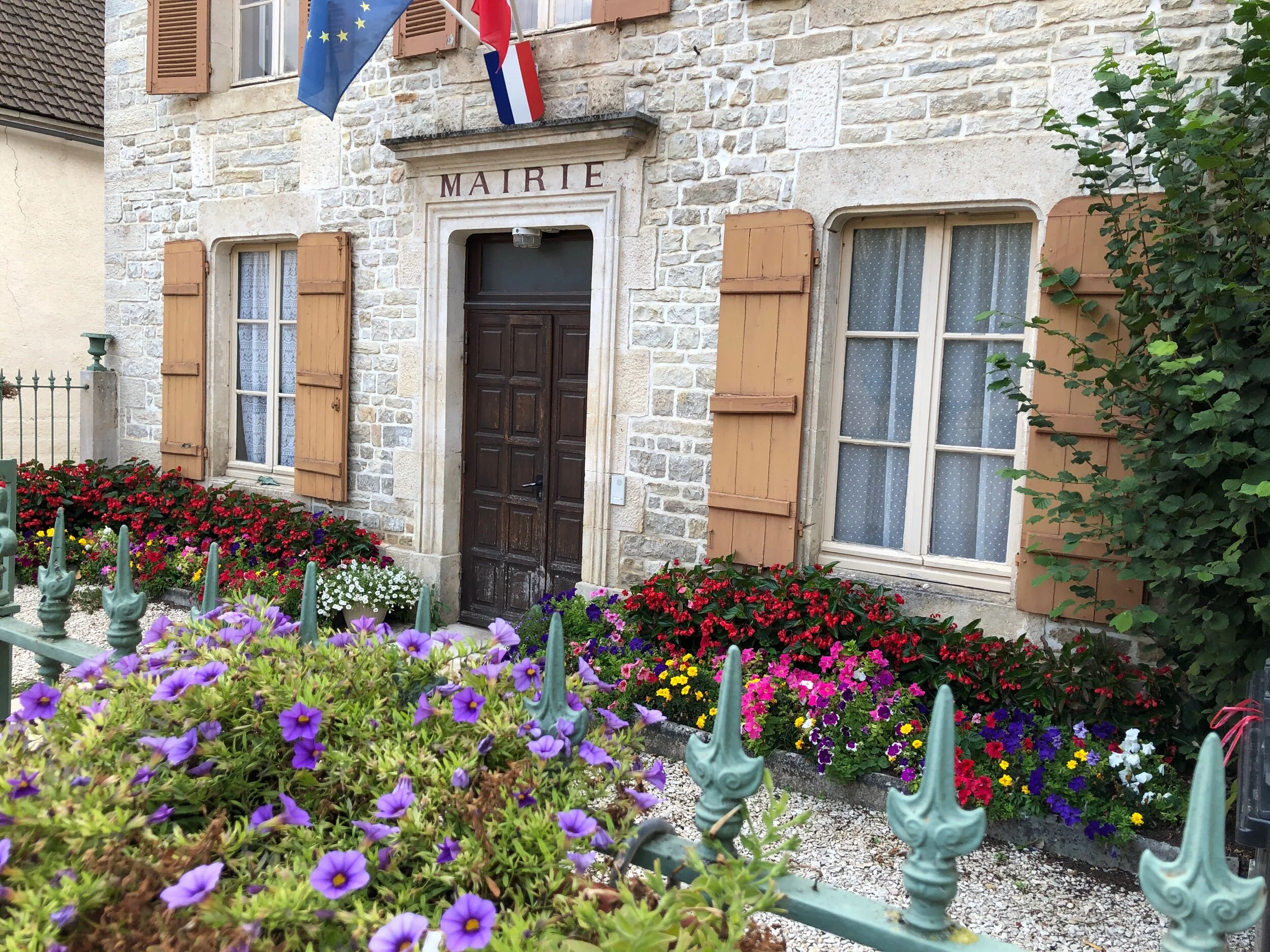 Every week Richard, the ‘commune groundsman’ (Im sure that’s not his job title), waters the flowers via a pump linked to his truck, sucking water from the river. He also ensures the ‘Mairies’ office looks colourful, and keeps the old presses on the edge of the village filled with colourful blooms. All in all it’s very well tendered.