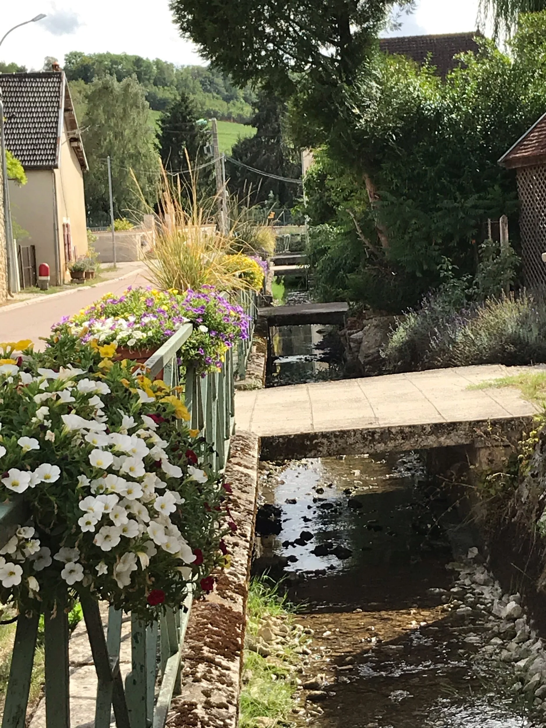 Our village, Viviers-sur-Artaut, is an established ‘Flowery village’. The commune takes great pride in ensuring it maintains their three flower status. Every year the villagers plant over 100 flower boxes to hang on the railings that run alongside the river Artaut, which flows through the village. It’s source is within the limestone rock just near the lavoir (wash house), and has never run dry.