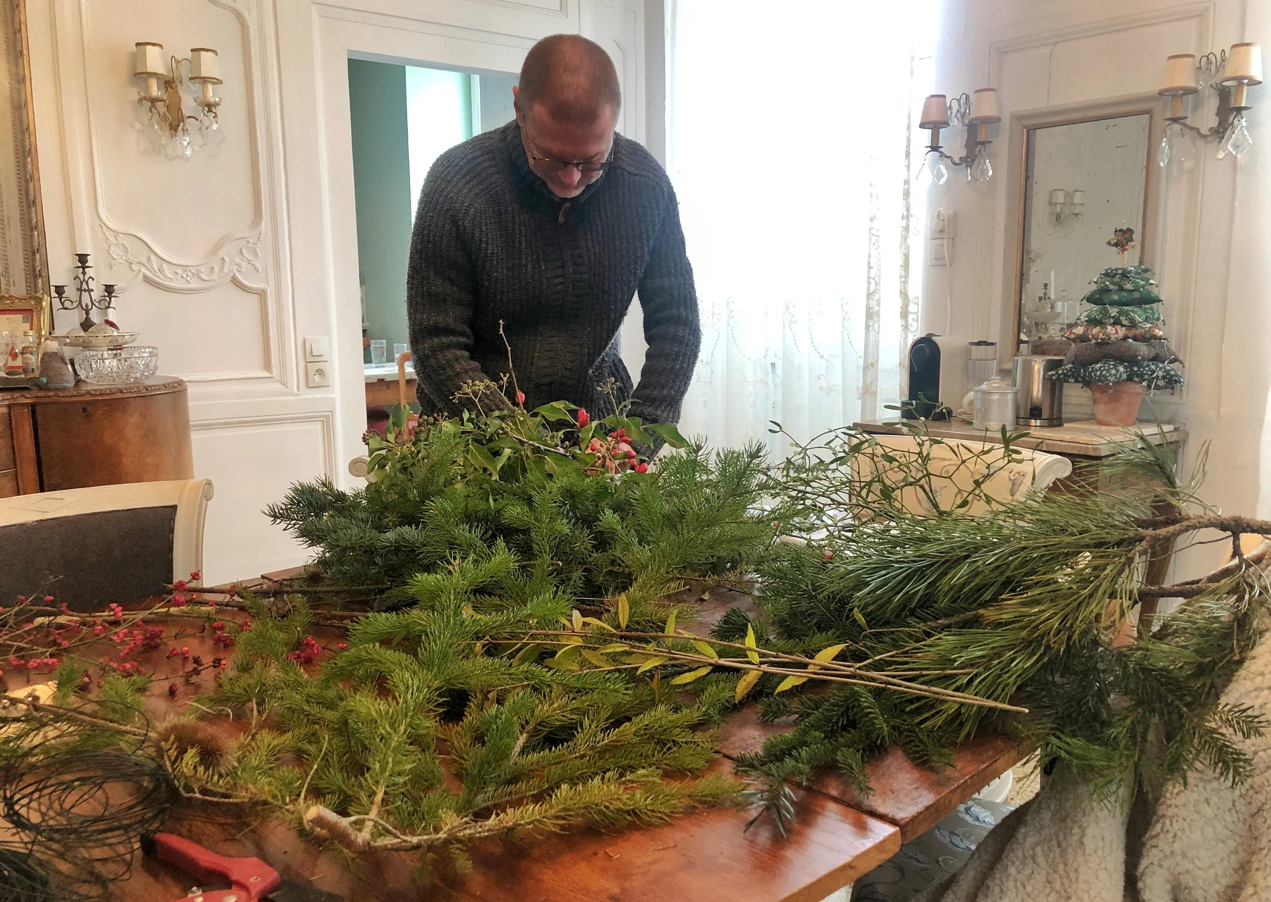 I really value the pleasure of being able to go for a forest walk, collect various pieces of foliage, then return home to make up your arrangements with what you have found. We had great fun in making our two swags, and I loved the results.