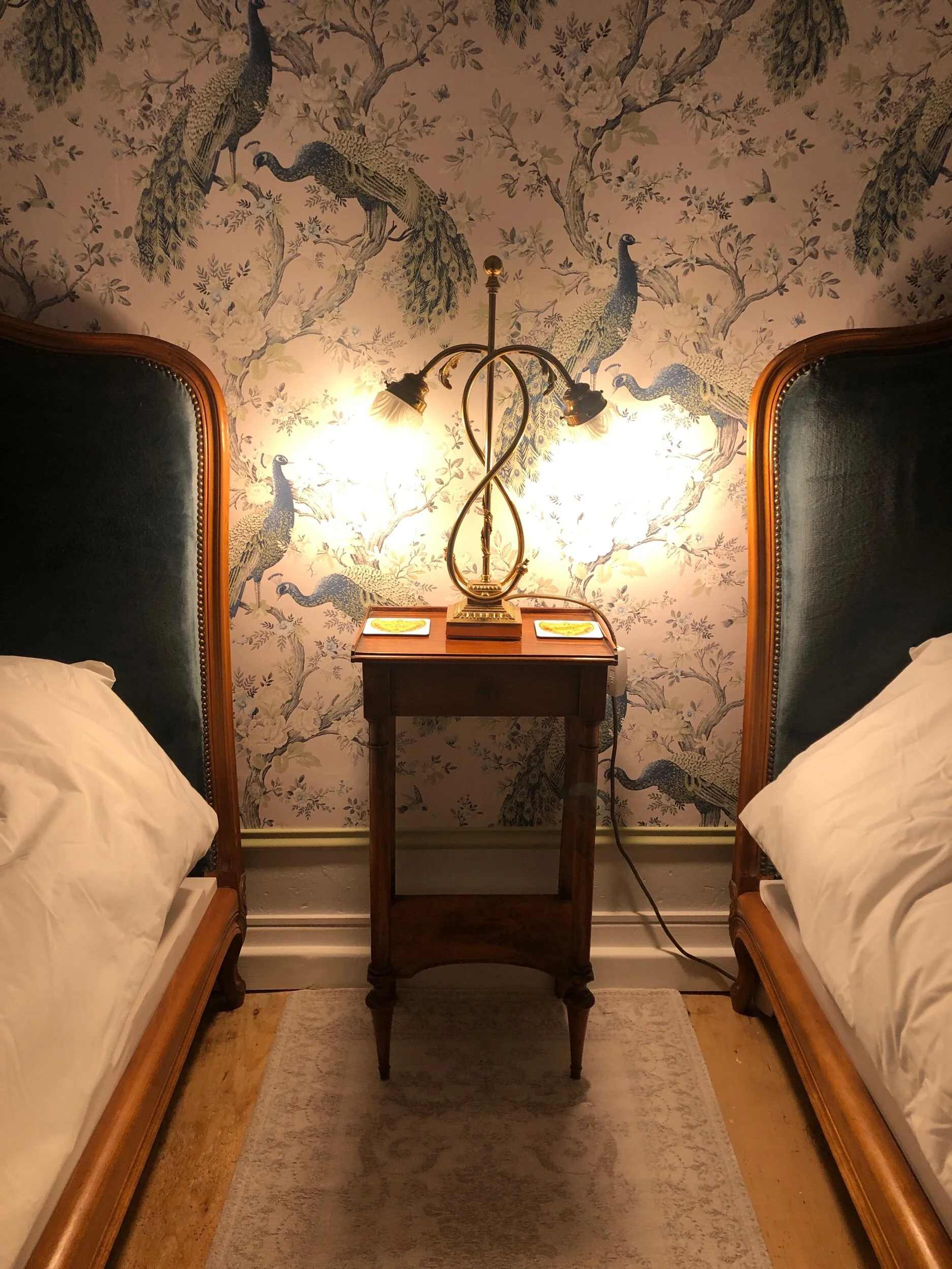 We still have a few things to do in this room, but we were keen to see how it looked once we put the beds back in there. So we spent some time fitting them back together, and making them up. It’s such a pretty little room and I love how the peacock wall has framed the beds together.