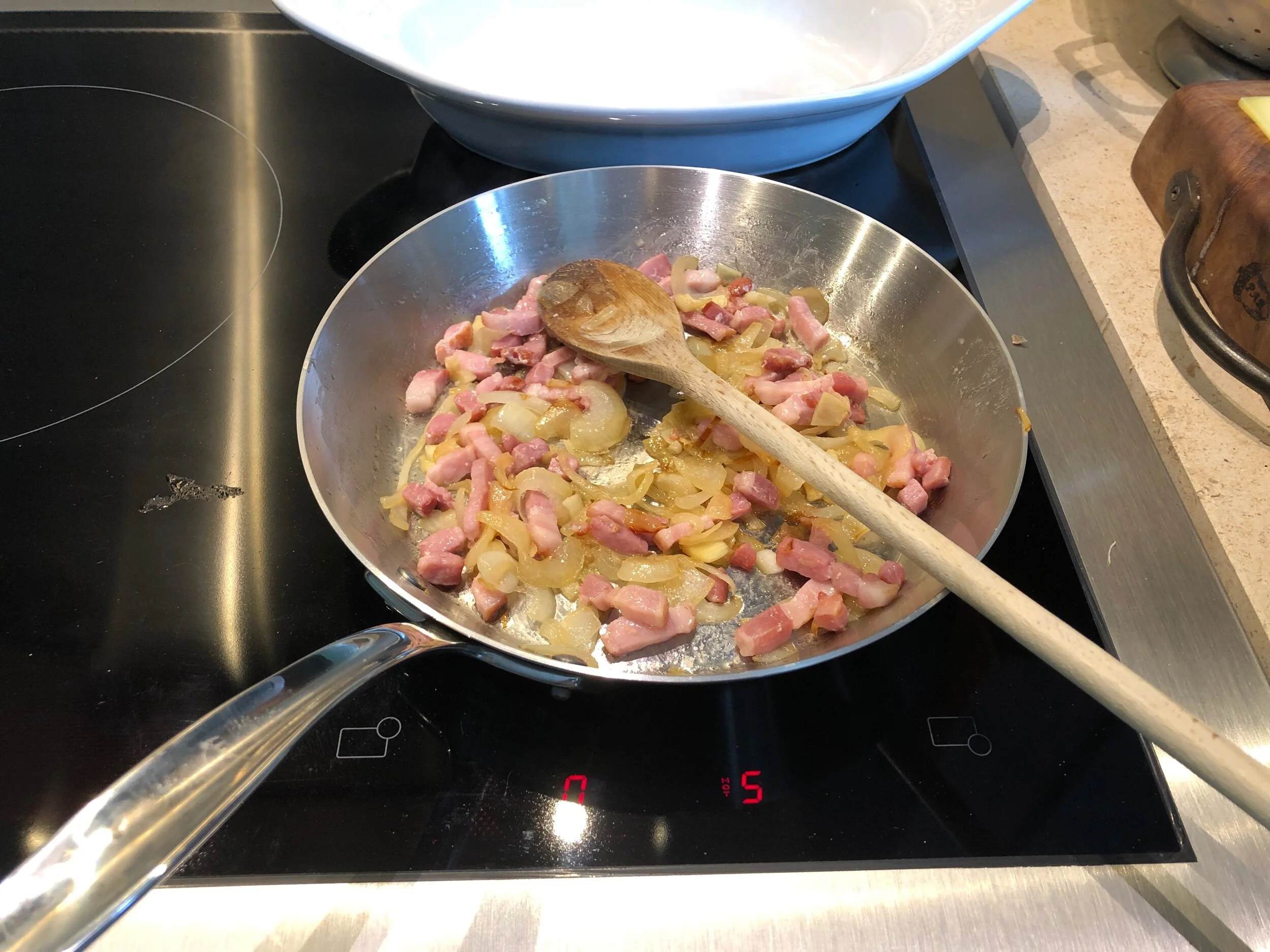 I thought I’d show how I make a tartiflette. If you haven’t eaten this before it is rather delicious, full of hot, creamy, garlicky, cheese sauce and salty bacon. It needs something quite plain with it, crusty bread or a simple salad.