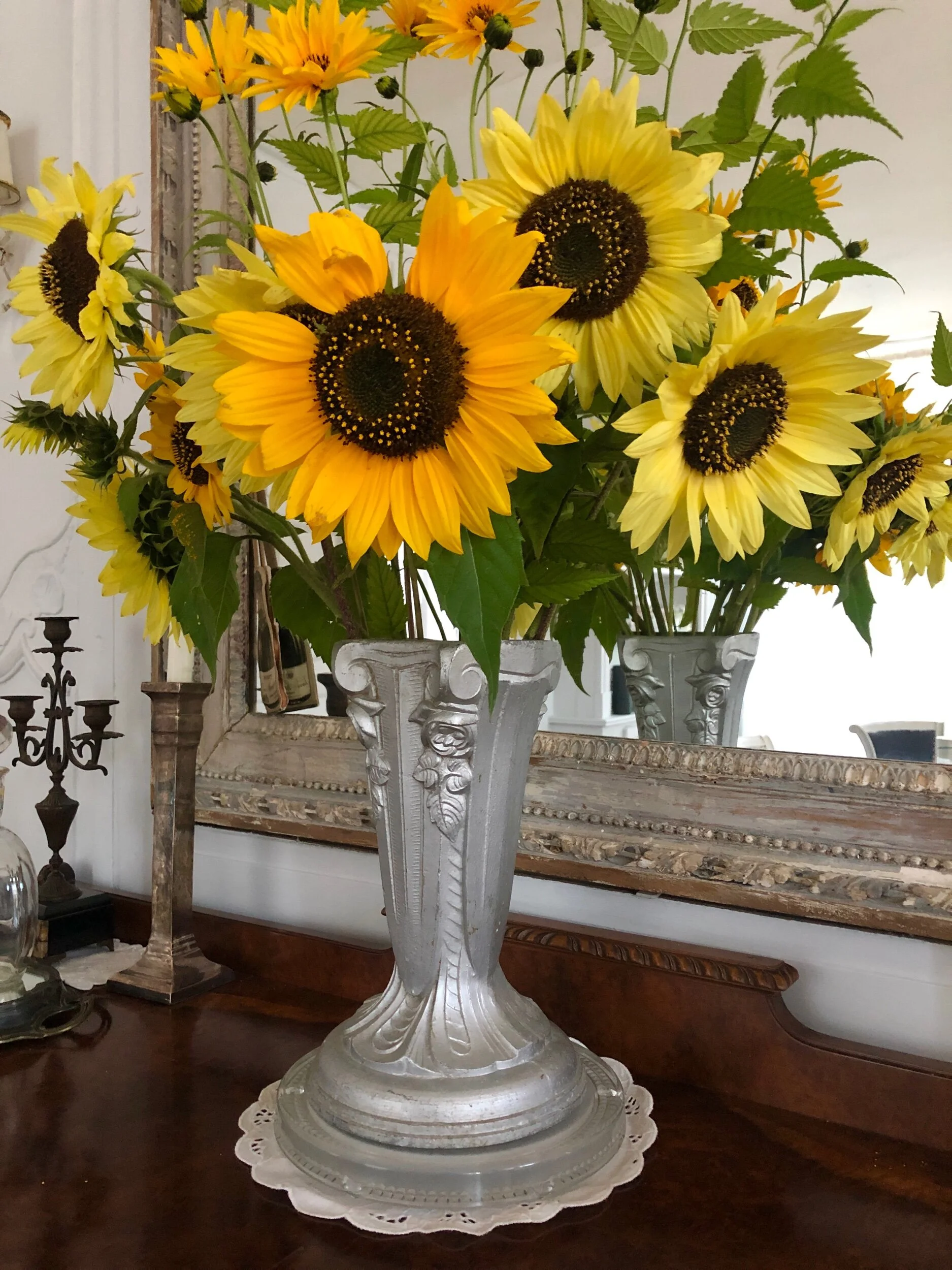 The sunflowers bring a flush of colour and sunshine into the salle à manger. We’re hanging on to summer for another week yet!