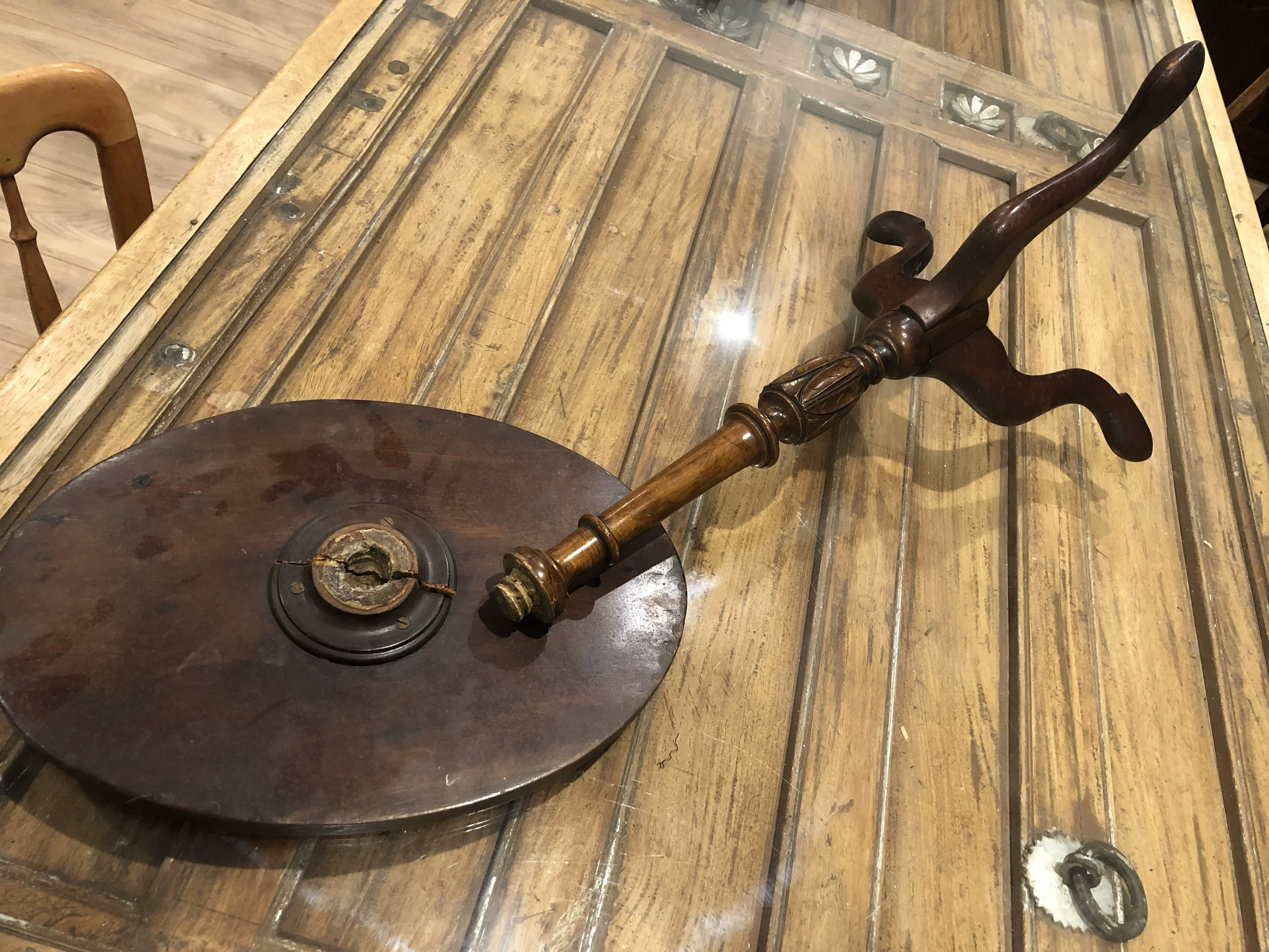 A very dear friend of ours gave us a beautiful old table that was unfortunately broken. It’s probably more than a 100 years old, and really quite delicate in its style. It has a main spindle supporting the table top, which has three legs at the bottom. However, the spindle was once screwed into a wooden fixing underneath the table top, which is currently broken in two.
