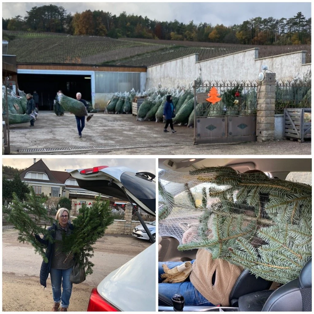 This is where we bought our Christmas tree from last year, so we know they sell really beautiful trees. We decided we would get in early and go and get ours on the way home. Obviously we couldn’t just buy a tree that would fit comfortably into a corner of our salon, oh no, we needed a 2.5 metre tree. We managed to squeeze it into the car - just - although it was touching the windscreen, and taking up most of Brian’s seat. Once we’d fitted it in the car, I went back to get some cut off branches, which are all free, and will be great to fill the house with greenery! Simply wonderful.