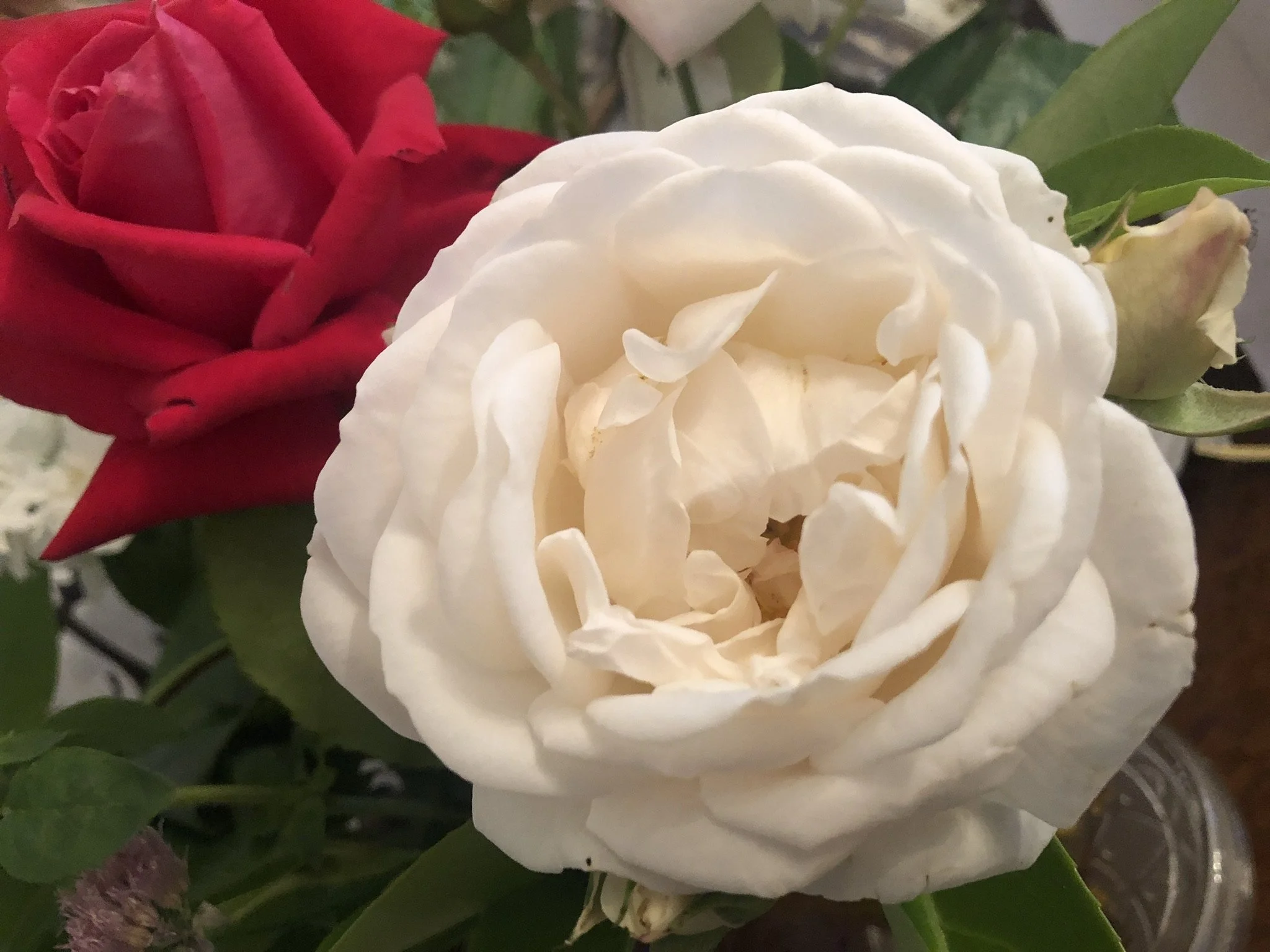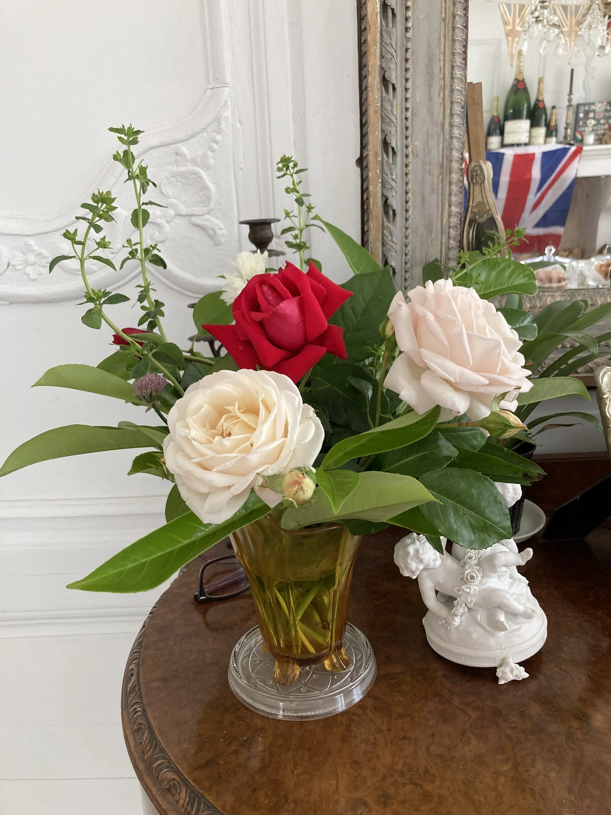 I managed to find some beautiful red and white roses just coming into bloom to use for the jubilee afternoon tea.