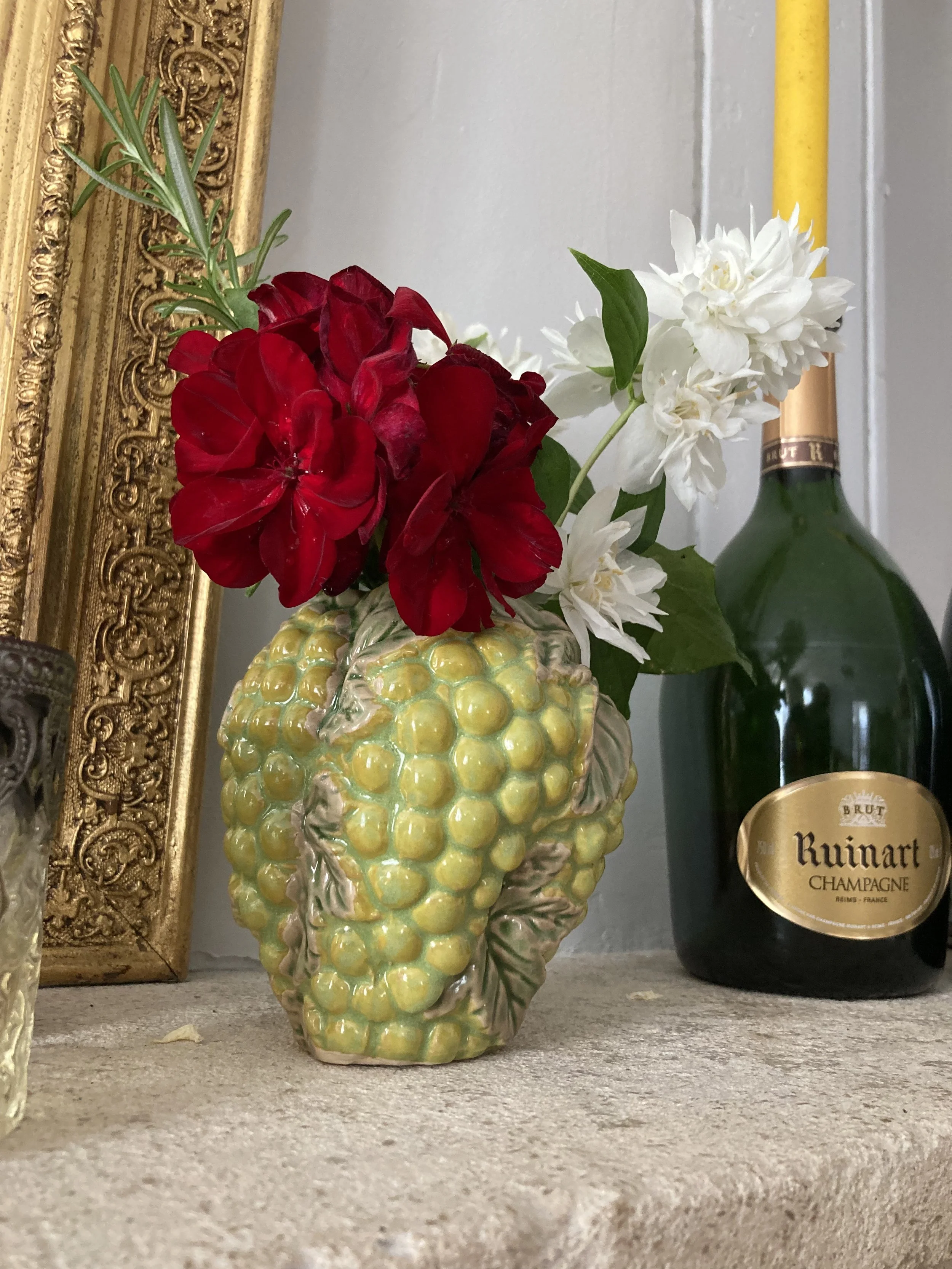The flowers we planted are flourishing in the garden this year, so there are a lot to choose from, so I also picked a deep red geranium, that I had planted in one of the cast iron urns in the garden. With a sprig of rosemary, to add some greenery, and a beautifully scented white flower, which has a gorgeously sweet aroma a bit like a jasmine, the displays were complete.