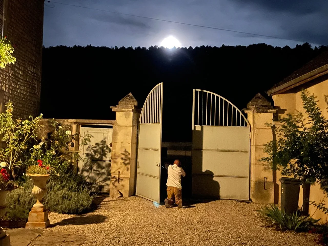 Brian quickly went to get his camera to capture it, but didn’t have his tripod to hand, so wheeled a bin over which he kneeled down near and leaned on. It was the best chance of capturing it, with minimal light in the street beyond.