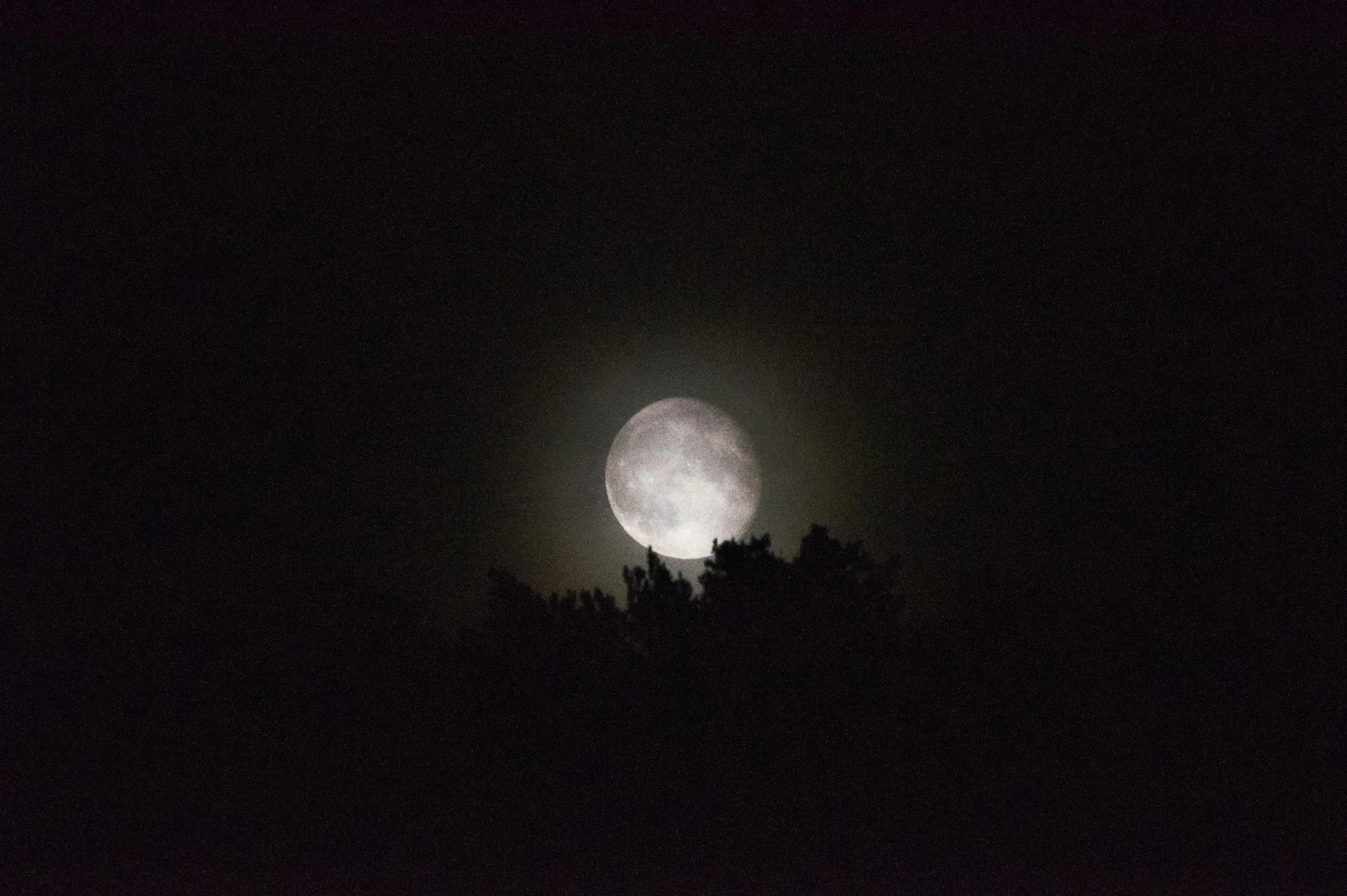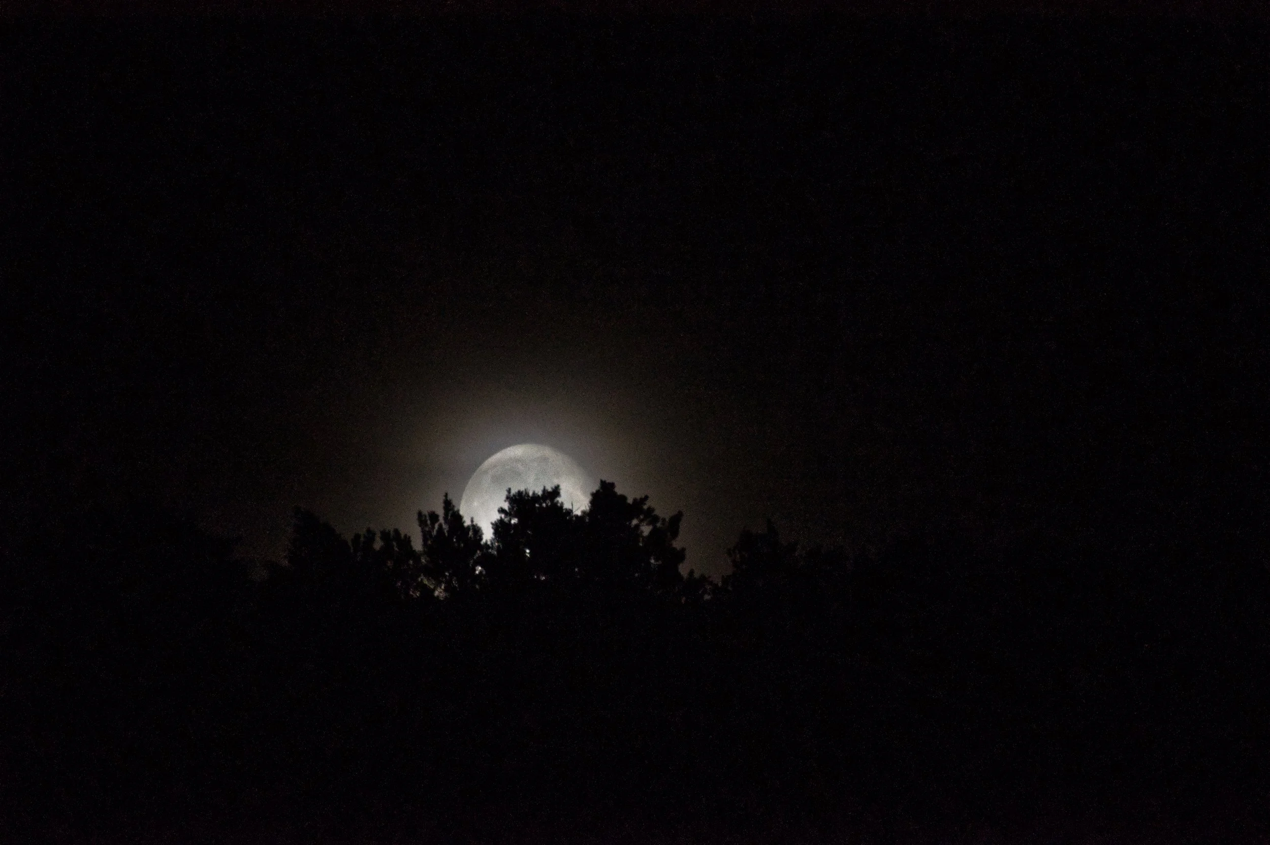 As we were finishing up eating dinner in the garden, and enjoying the last mouthfuls of our homemade cherry ice-cream, we noticed the moon was starting to rise from behind the tree line.
