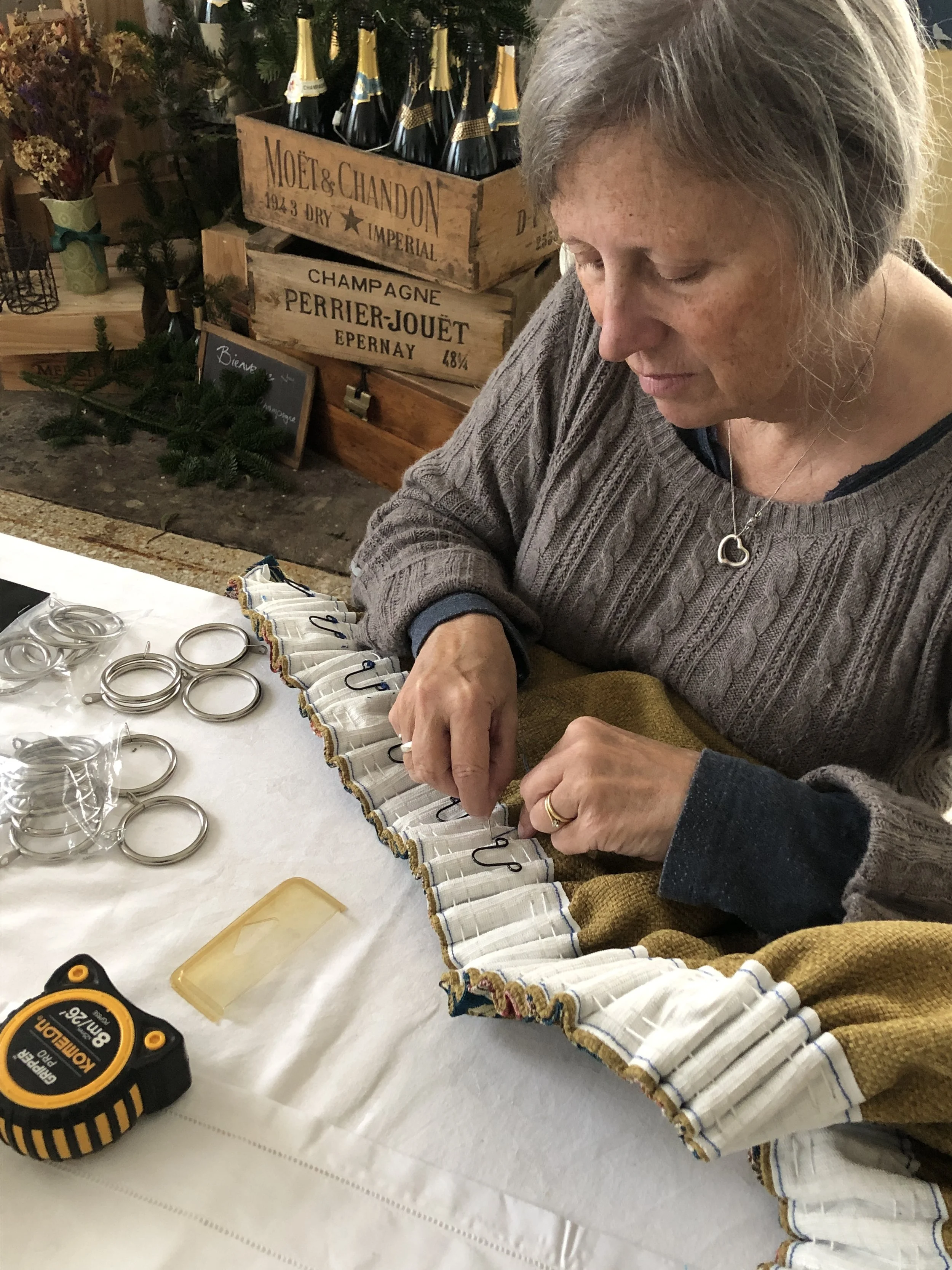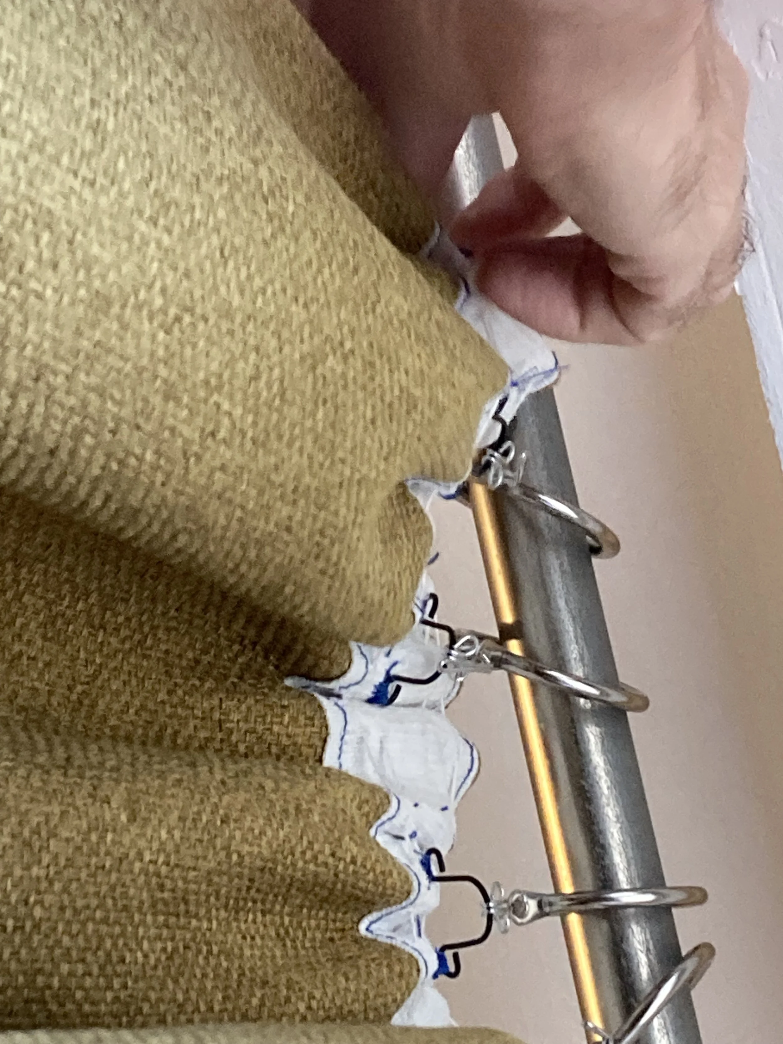 There was a little job I wanted to redo this week, our curtain up at the front door had broken away from some of the curtain hooks. It hadn’t surprised me, as the curtain is really heavy, and I’d used plastic hooks with wooden rings. It was just not a strong combination. I’d bought some metal rings, metal curtain hooks and a metal ‘U’ hook to fix onto the curtain tape to strengthen the whole fixing.