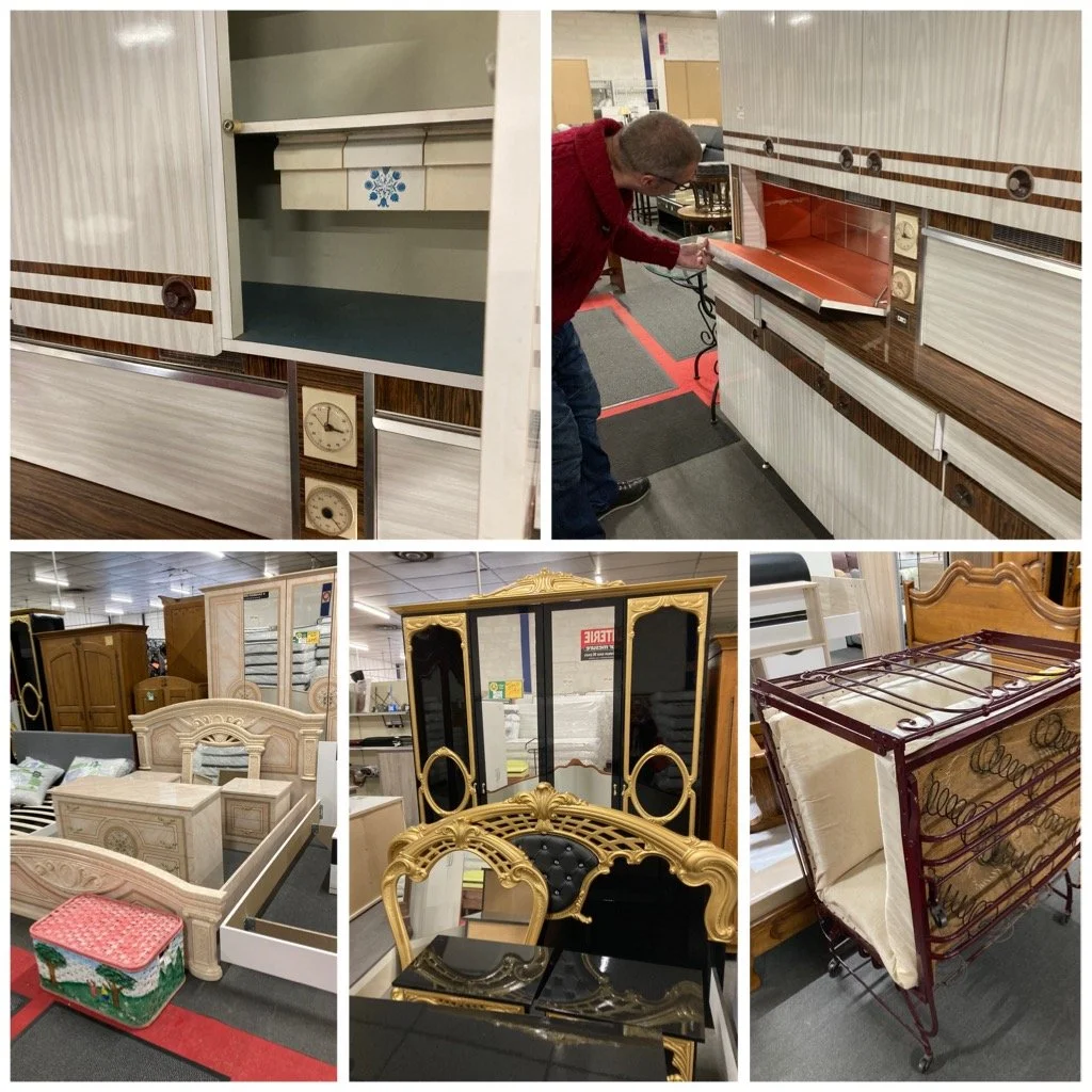 We do love looking to see what interesting objects we can find though, even if we’re not looking for anything in particular. In one of the shops they had an amazing retro, ready-made kitchen unit, all melamine and very sixties. They also had a couple of bed sets, which were an enormous 1,500 euros each, not exactly a bargain, even if you were in the market for some rather gauche bedroom furniture. We did kind of like the fold-away bed; that made us smile. Not something we were interested in though.