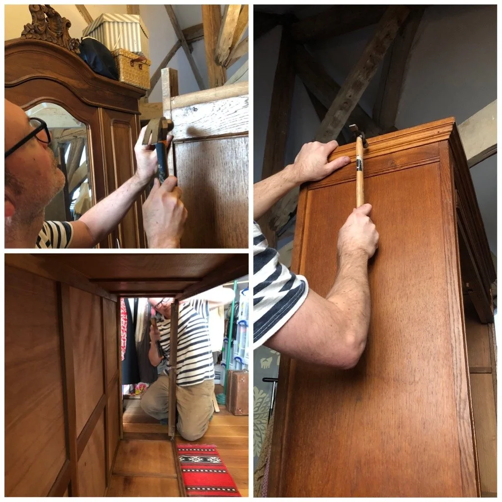 Brian was keen to start putting the armoire back together. Neither of us had enjoyed having to take it apart, we were slightly worried we could damage it. But we knew it was the only option.