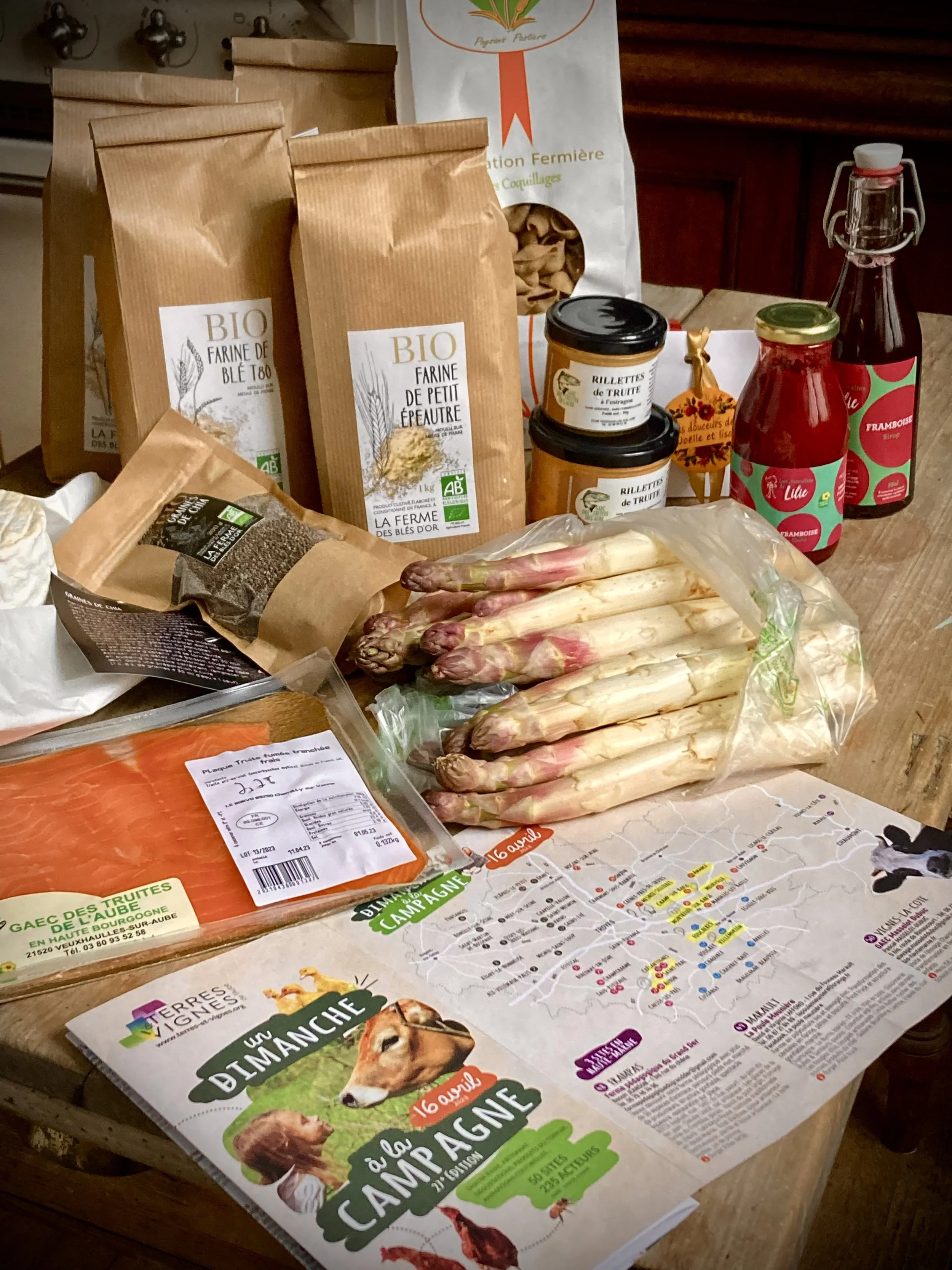 These are the treats that we bought yesterday at ‘Dimanche à la campagne’, or Sunday in the country. It’s a festival to celebrate all the beautiful local produce in our region.