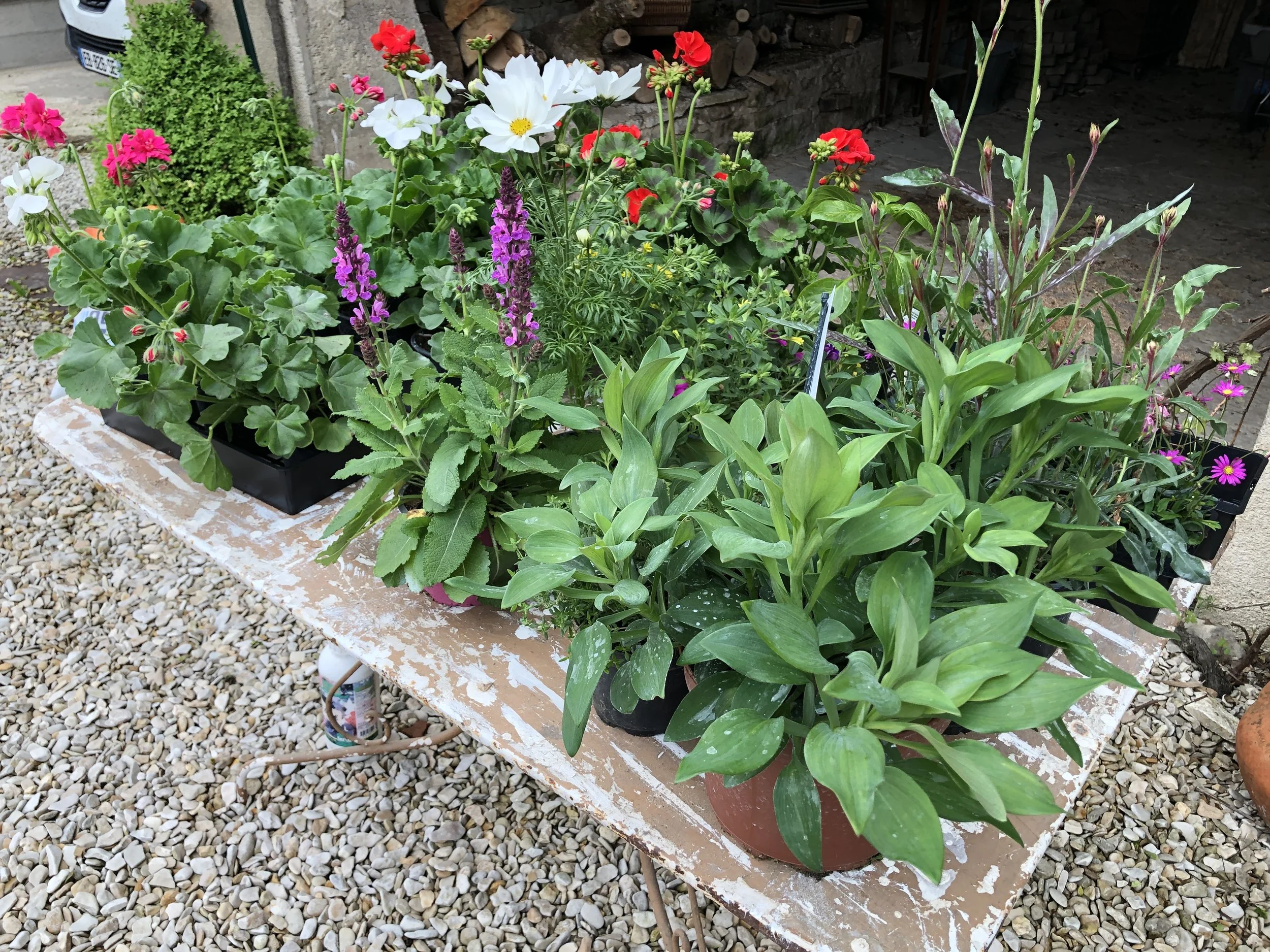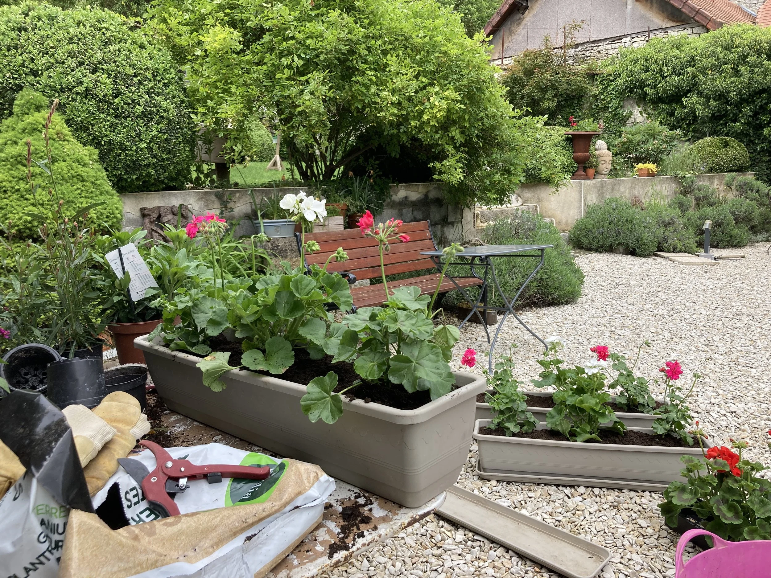 I’d bought some beautiful plants at the garden festival last weekend, and I was keen to get them planted. I had a few ‘vivace’ (perennials), which I will find some spots for in my borders, and I’d bought some beautiful pink geraniums for the front of the house.