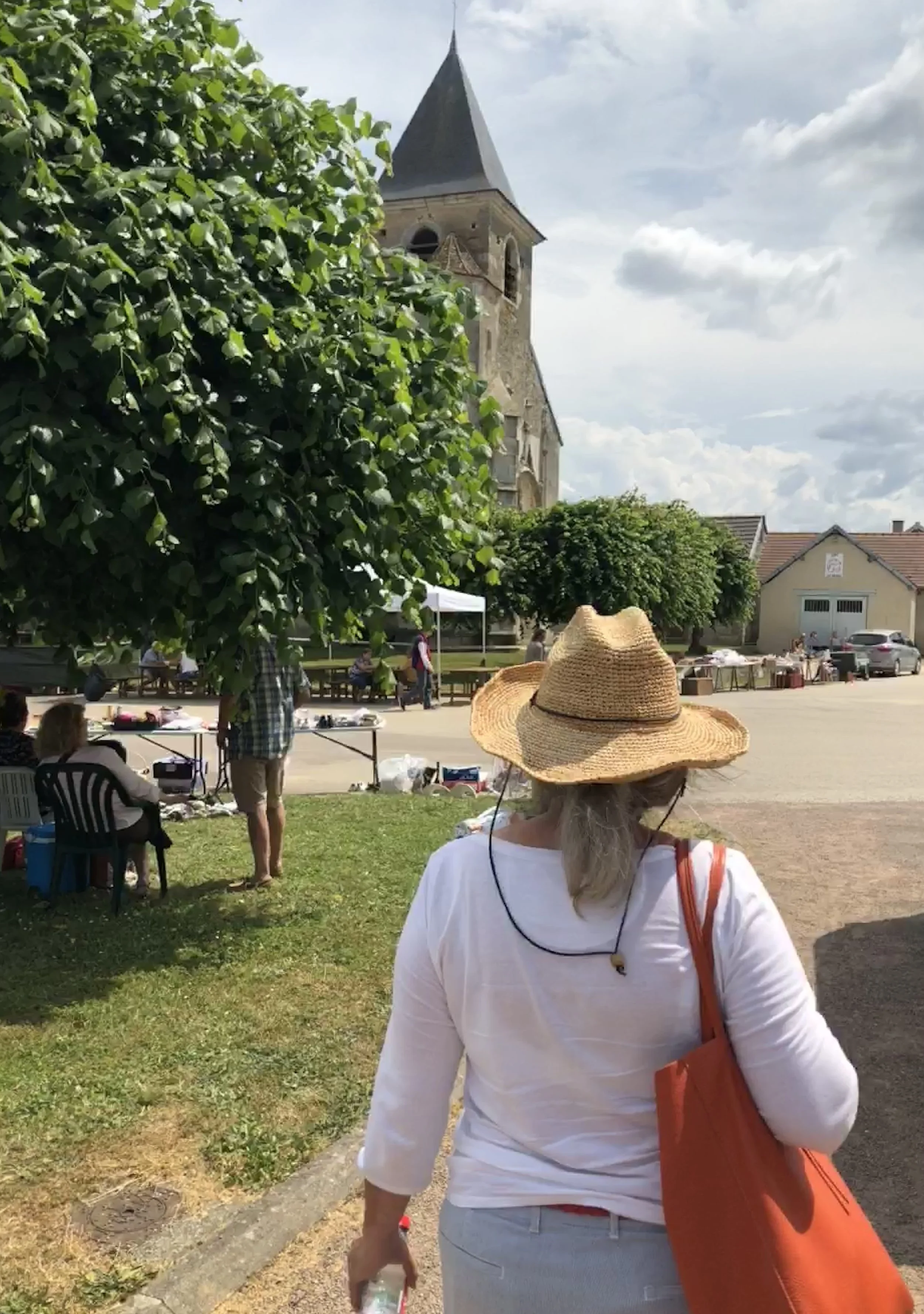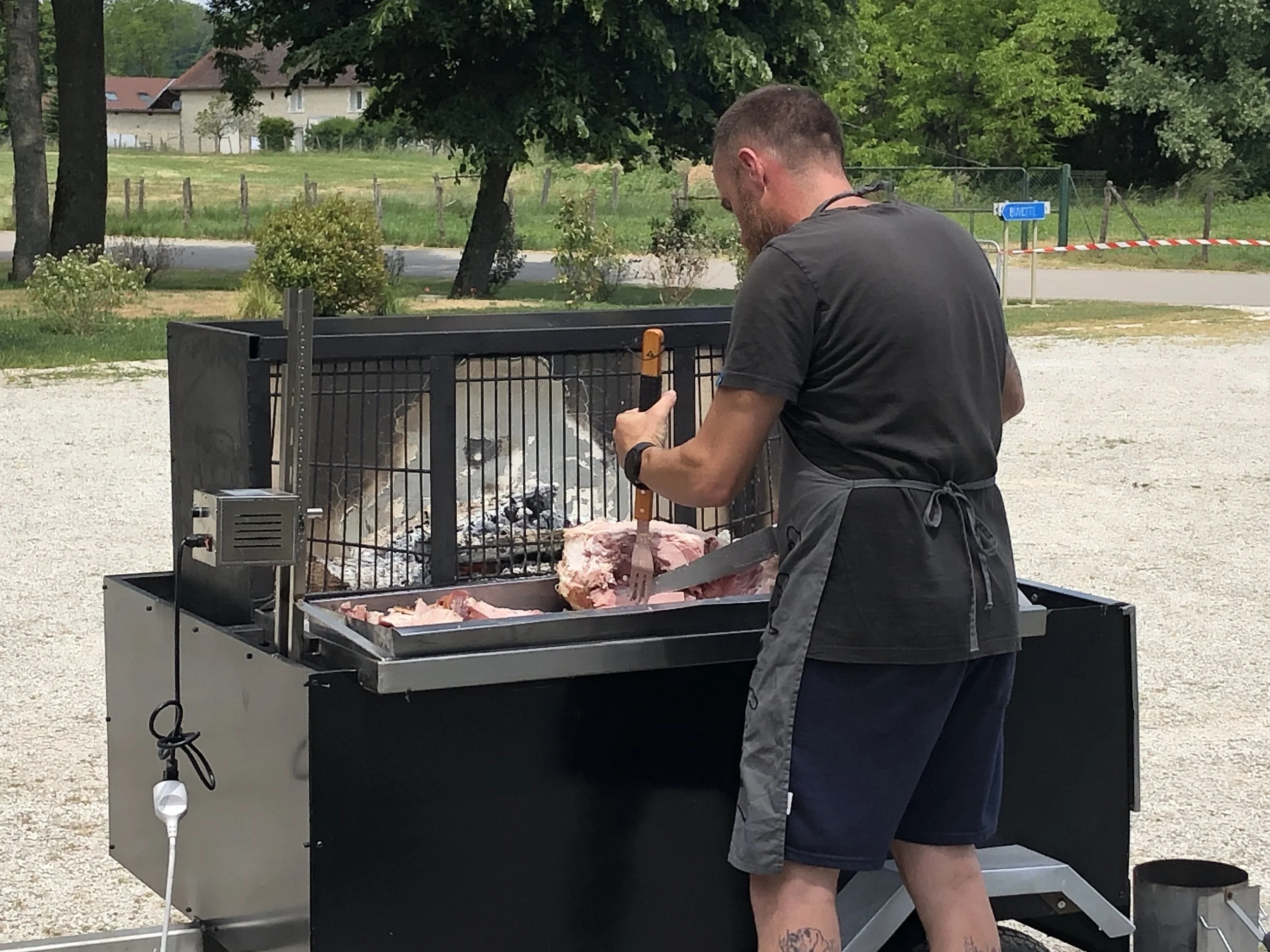 We woke early this morning and decided to head out to visit a few vide greniers. We both just love doing that on a Sunday morning. They were all in roughly the same area, but mainly villages we hadn’t visited before. At the second venue we were tempted by the look, and the delicious smell, of a roasting ham joint being cooked over a coal fire. It was being served with chips. I have to say, for a food stall at a vide grenier, it was absolutely delicious.