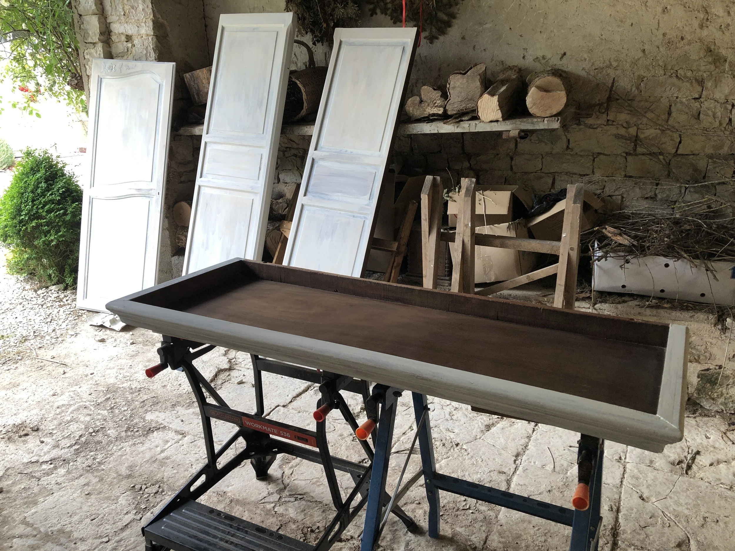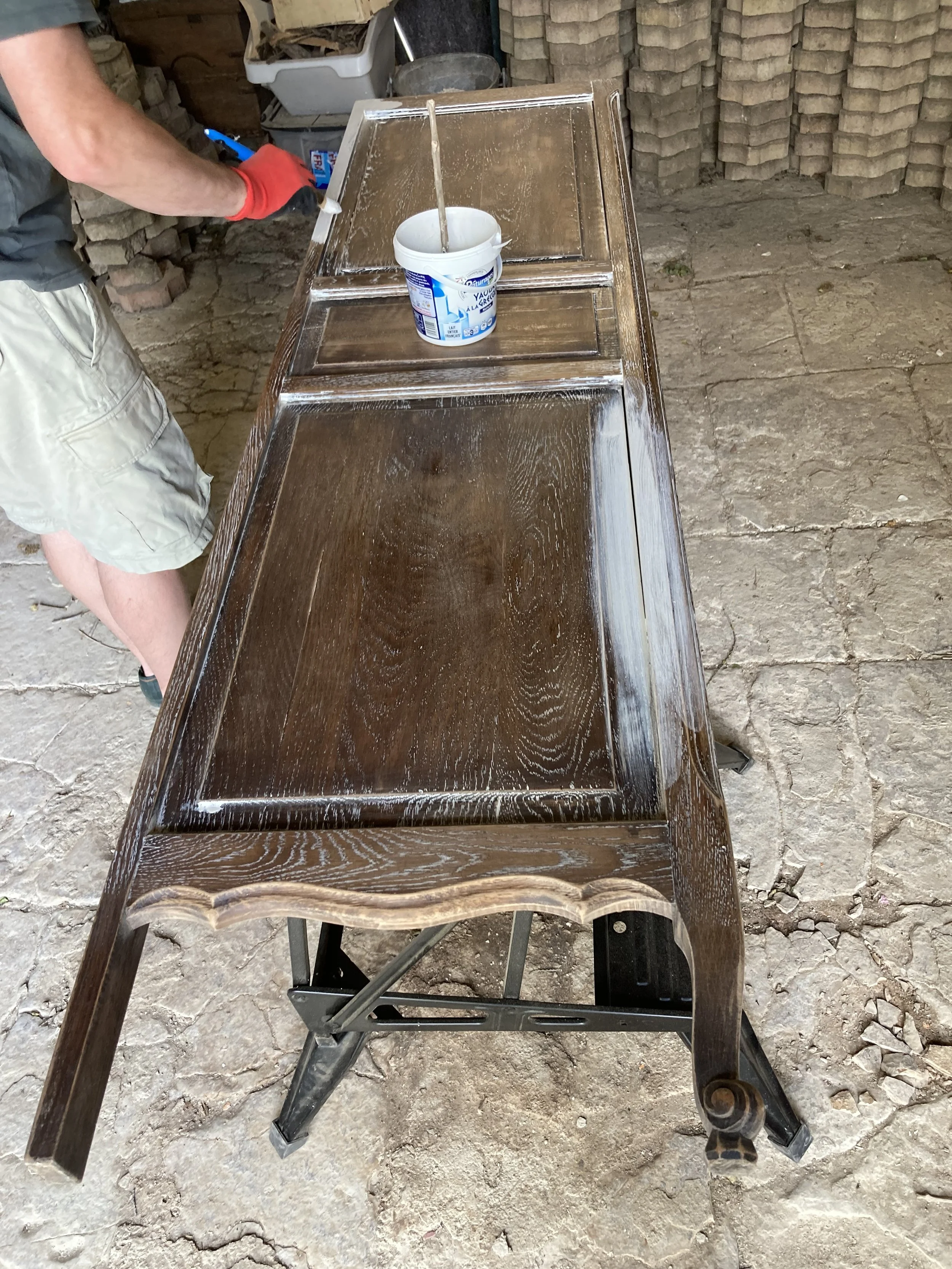 The first coat went on easily but was quite patchy, but we soon had a second coat on it which cheered us both up as it had much better coverage.