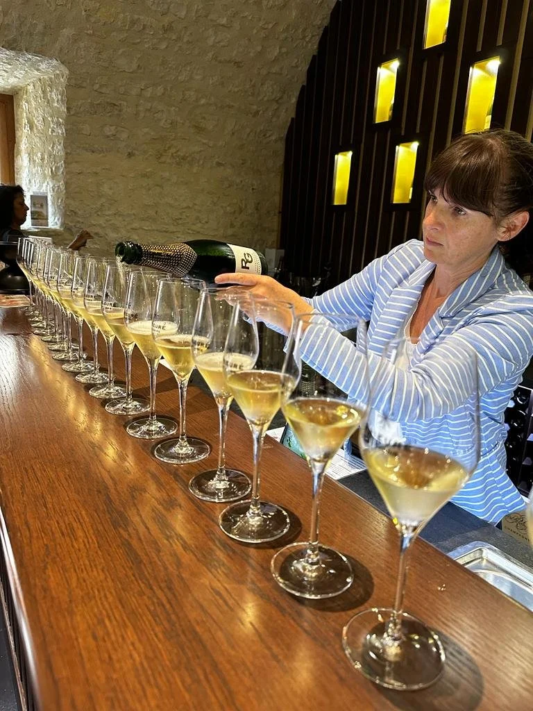 We started our Champagne tasting journey by a visit to our local producer, Robert GrandPierre. There is another British family who have a holiday home in our village, so we asked if their group wanted to join us. It was a fabulous tasting of their blanc de blanc, réserve, prestige and finally their rosé de saignée. All are wonderfully made wines, but a favourite of ours at the moment is their blanc de blanc, 100% Chardonnay. It was quite a happy, and very chatty little excursion.