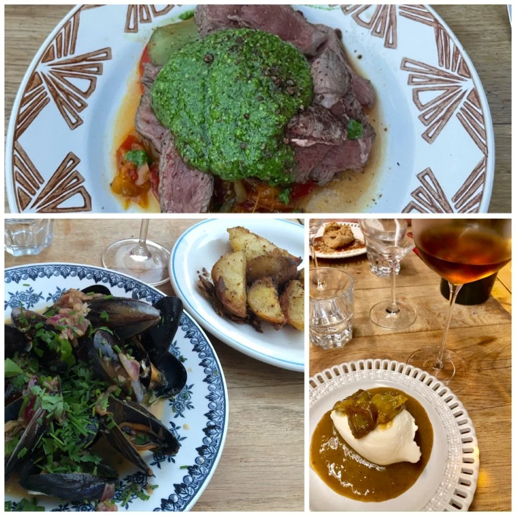 There were just two mains to chose from, each extremely well cooked, I had the beef and slow cooked peppers, Brian had the mussels with roasted potatoes. The desserts are absolutely scrumptious and simply not to be missed.