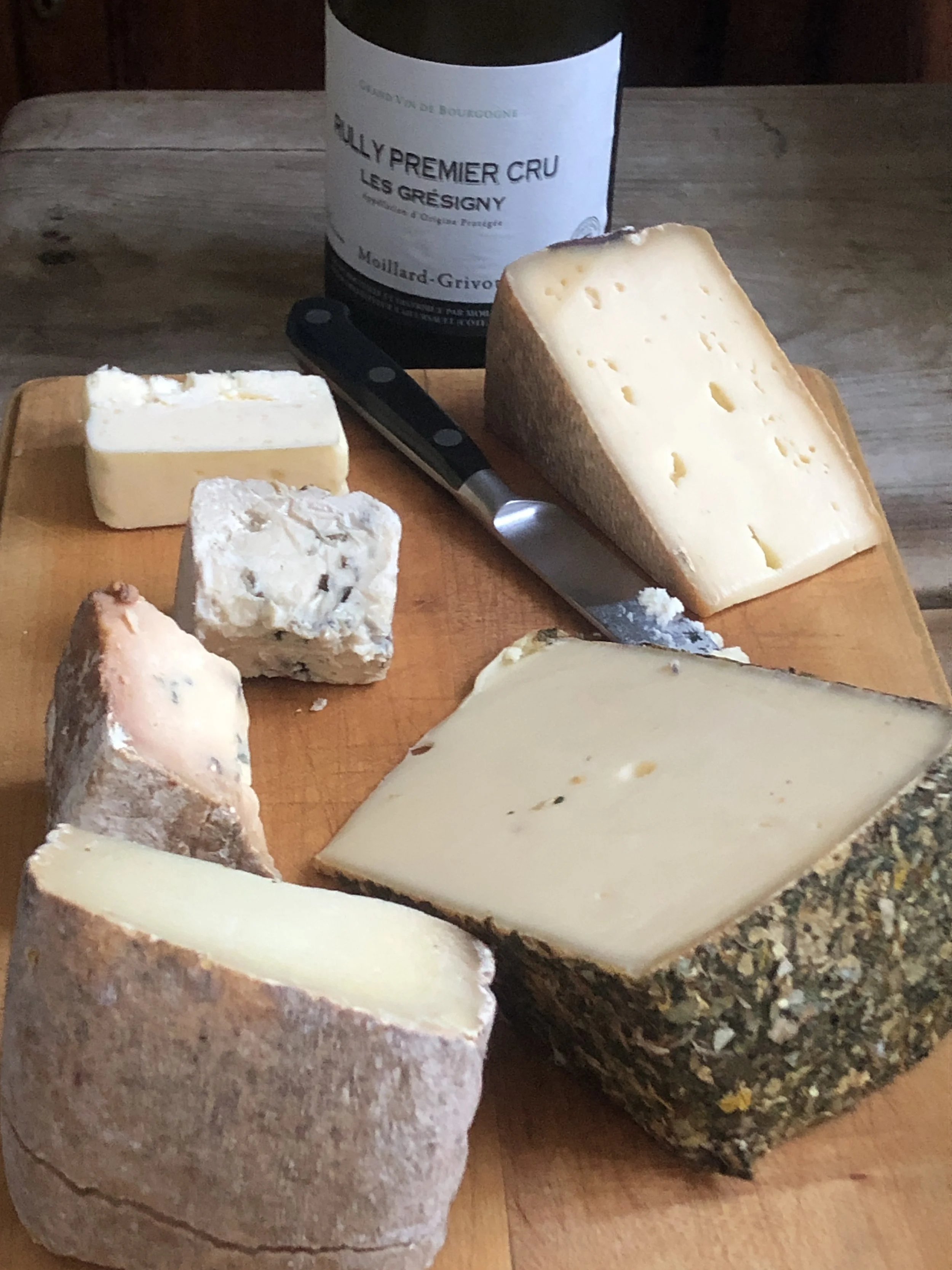 As we’d had lunch out, we didn’t need a big meal for supper, so enjoyed a nice glass of Rully with some delicious cheeses.