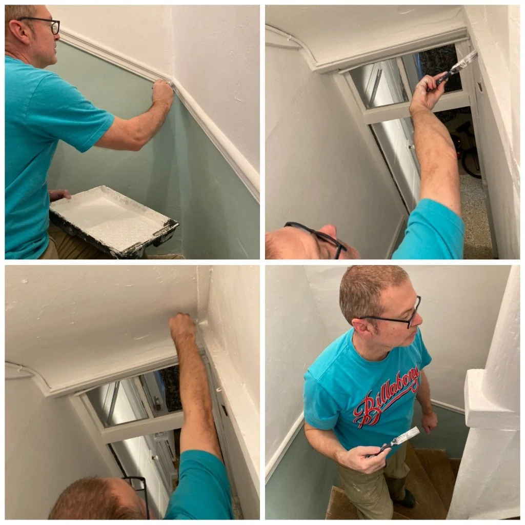 The stairwell was showing a few scuff marks and areas of wear from the last couple of years. It has been two years since we decorated it. Conscious that we will shortly soon be welcoming guests back to our b&b, we decided to touch up the areas which needed some attention.