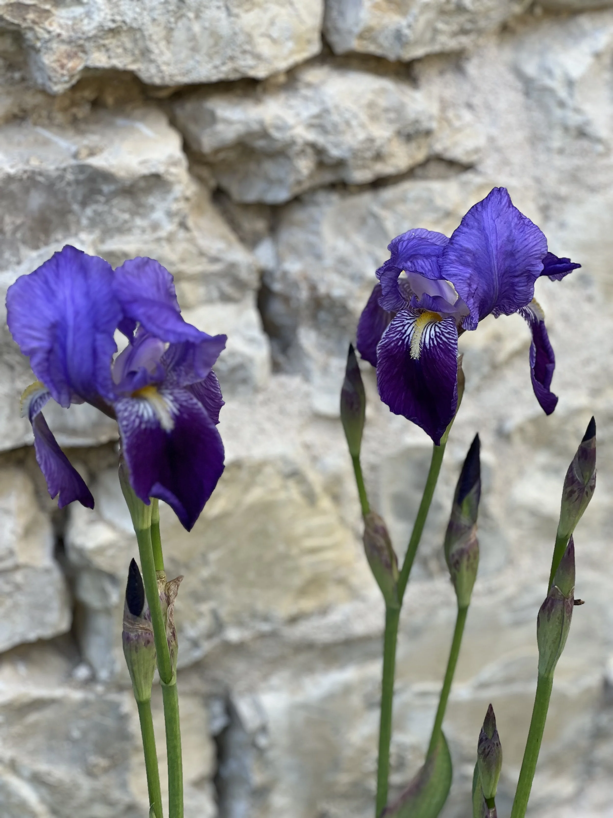 The irises near the wall have also started to flower. It may however, put a hold on any repointing we are doing. The blue of the flowers looks so gorgeous against the white stone wall. The work we’ve done on the wall so far has definitely improved it, so we’ll get back to it soon.