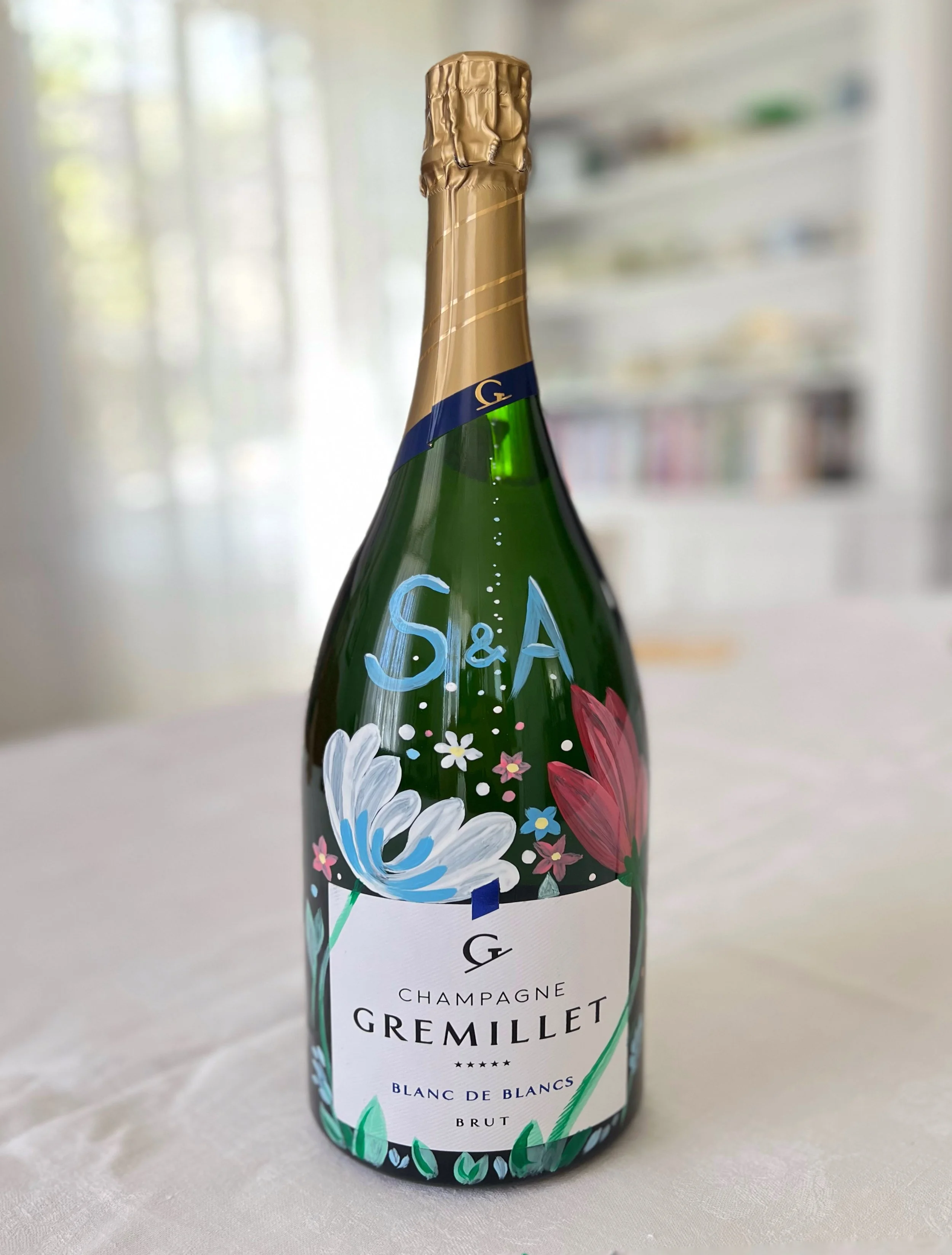 So for their wedding a few of us decided it would be nice to make a decorated Magnum of the same Champagne for their wedding present.