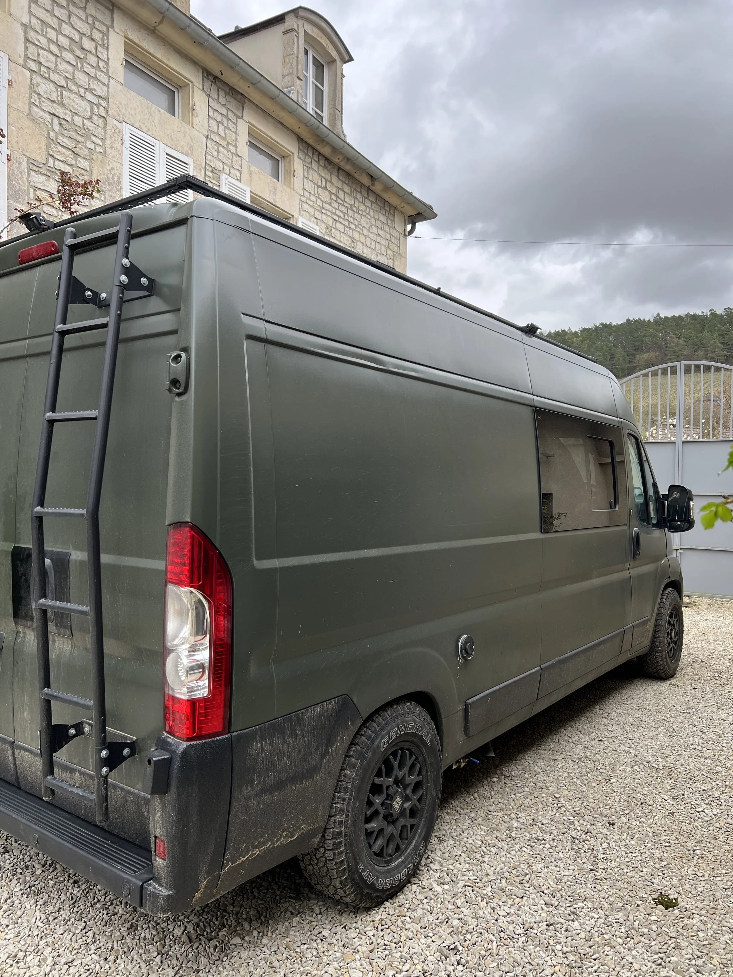 Aswell as ensuring they have the right kit externally; solar panels on the roof, four season tyres, recovery tracks. They have also made sure they are comfortable inside with a full-size mattress, a hot water shower, sink, cooker and proper fridge freezer.