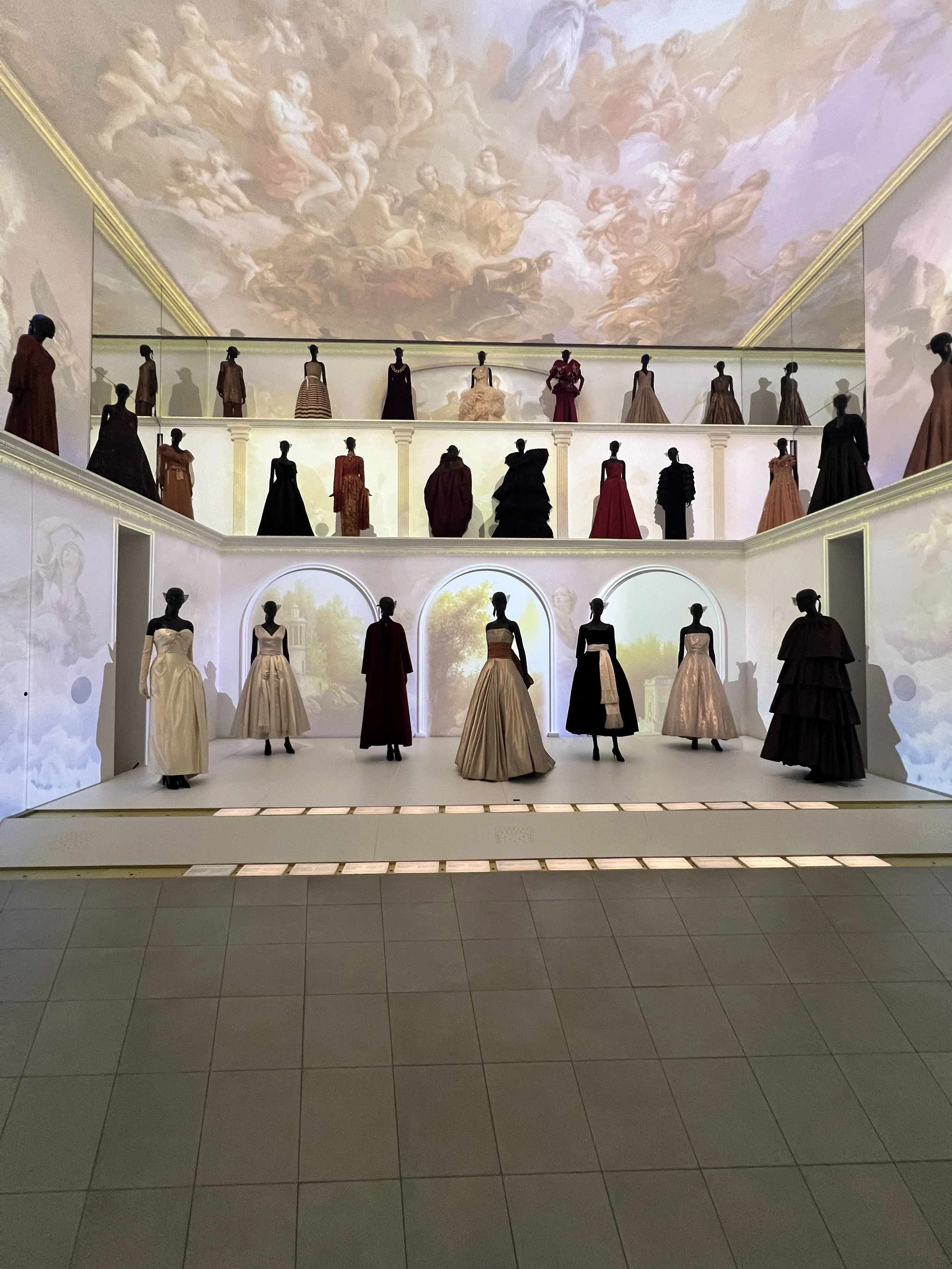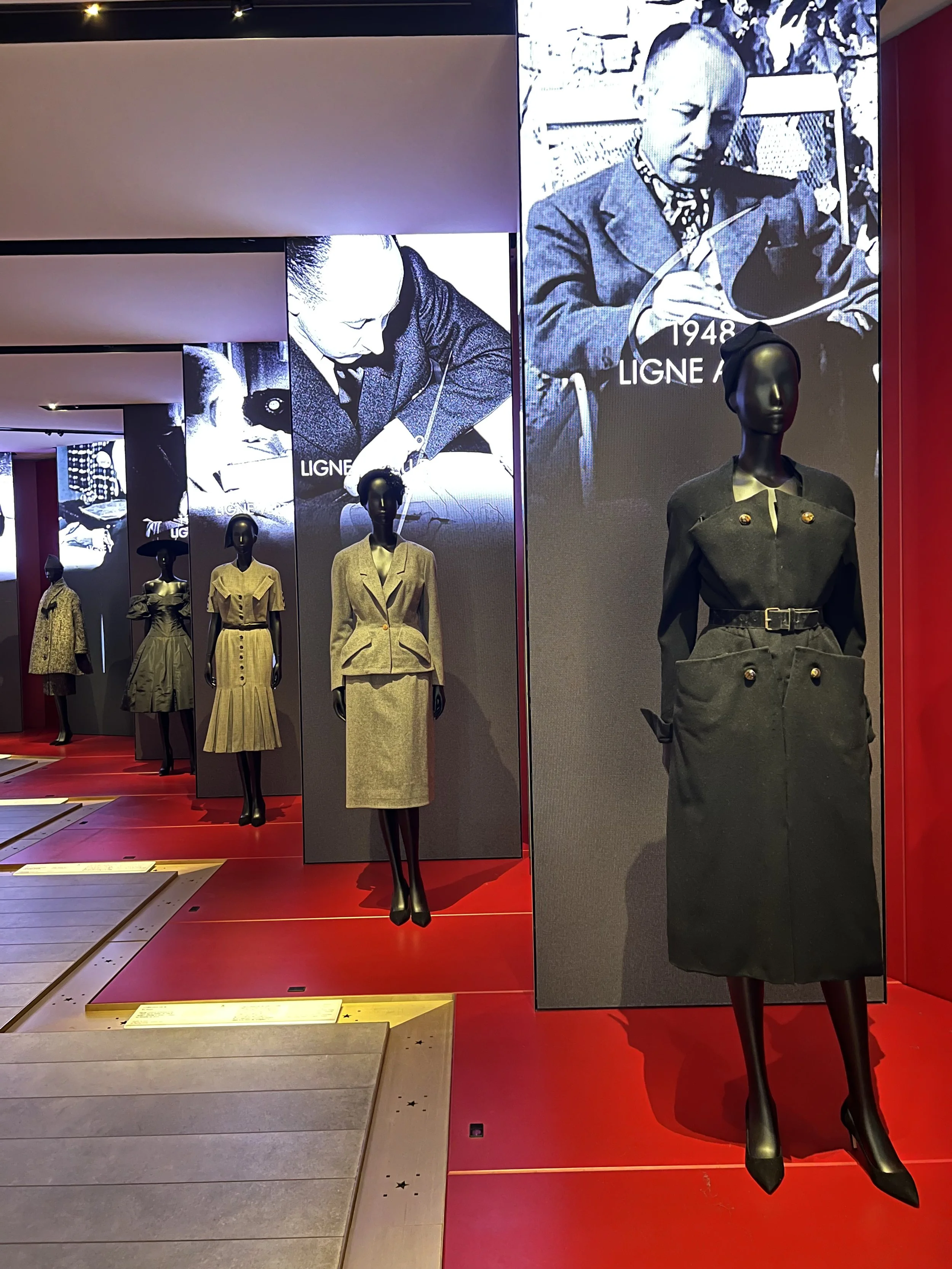 The evolution of the brand is chronicled throughout the gallery, highlighting the continuous development from that first "New Look" in 1947 to the modern designs we see now, and their impact on the fashion world.
