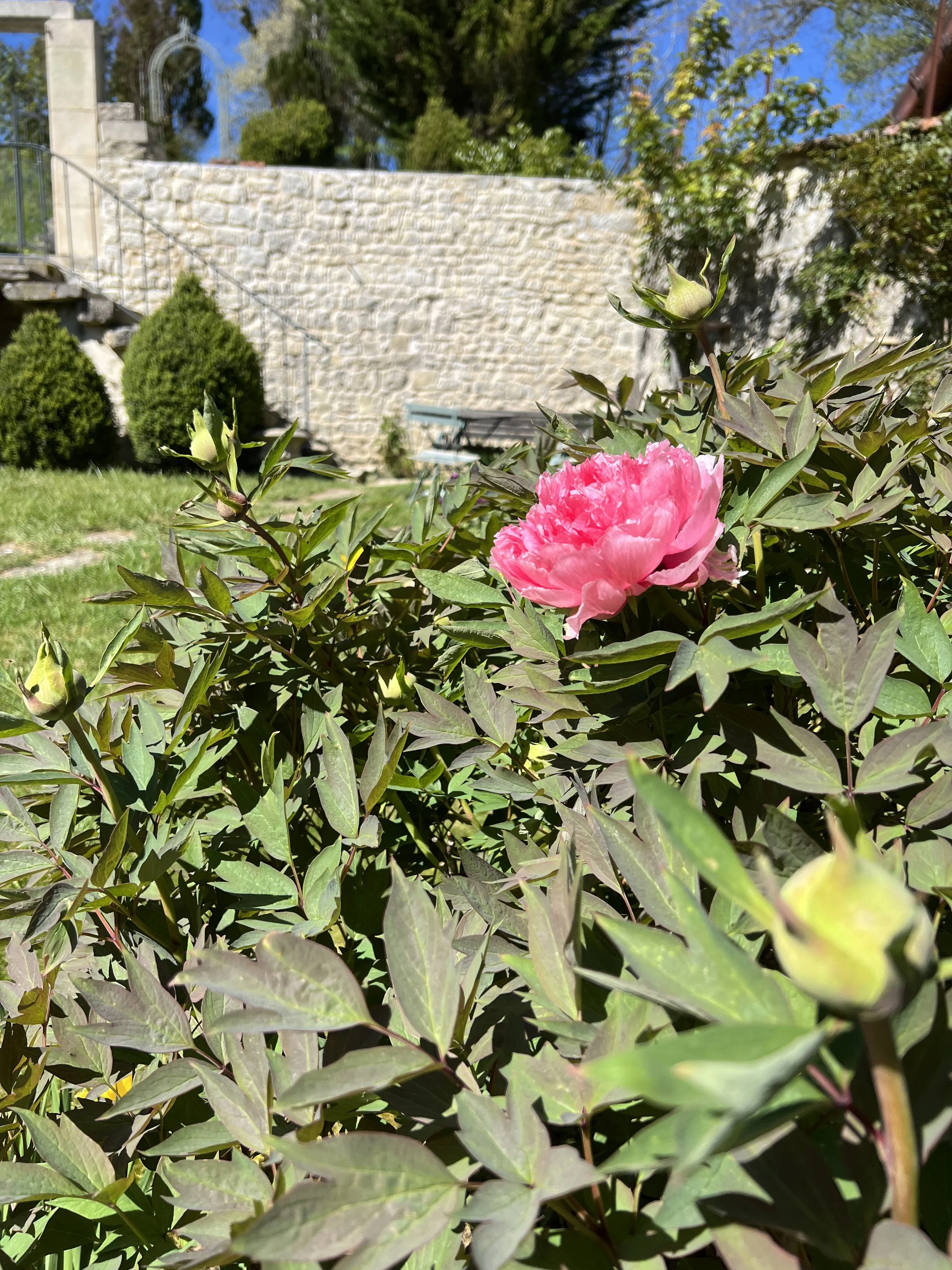 As I walked out into the garden this morning, ready to have a look at what I could easily achieve on my own, I spotted my first peony flower of the year. It was on my tree peony, a gorgeous candy pink.