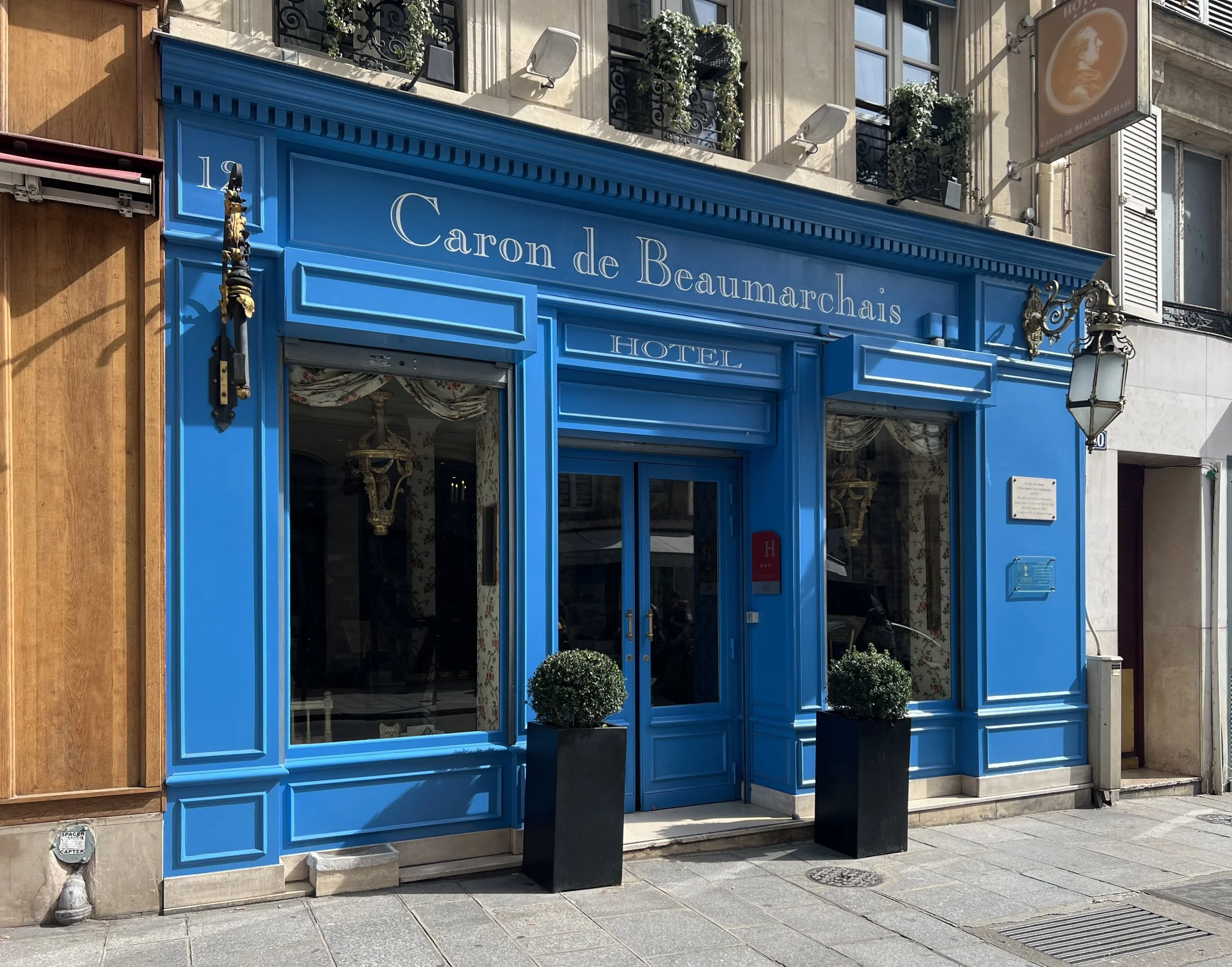 We’ve chosen a small boutique hotel called the Caron de Beaumarchais. It is situated just off the rue de Rivoli on the edge of Le Marais.
