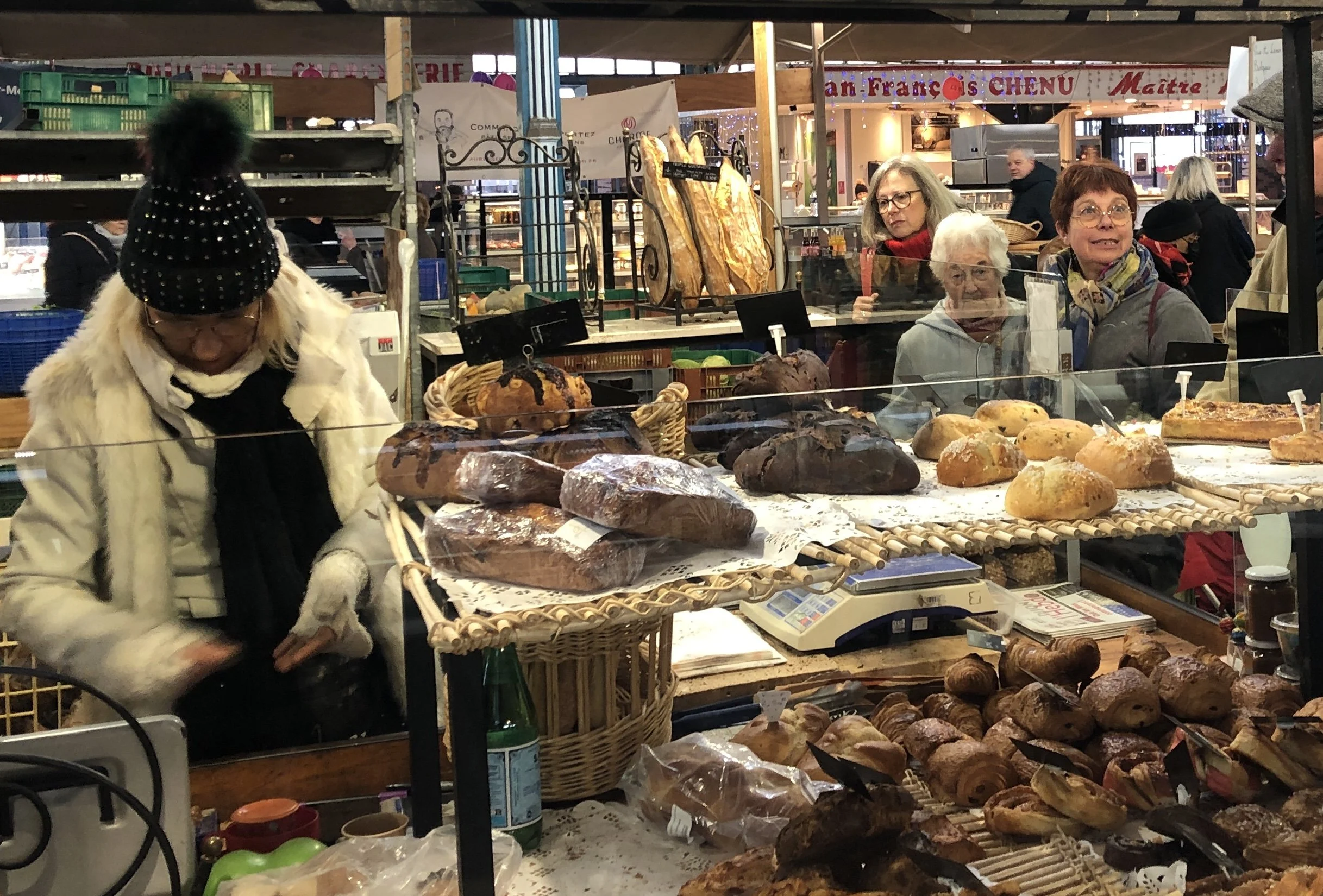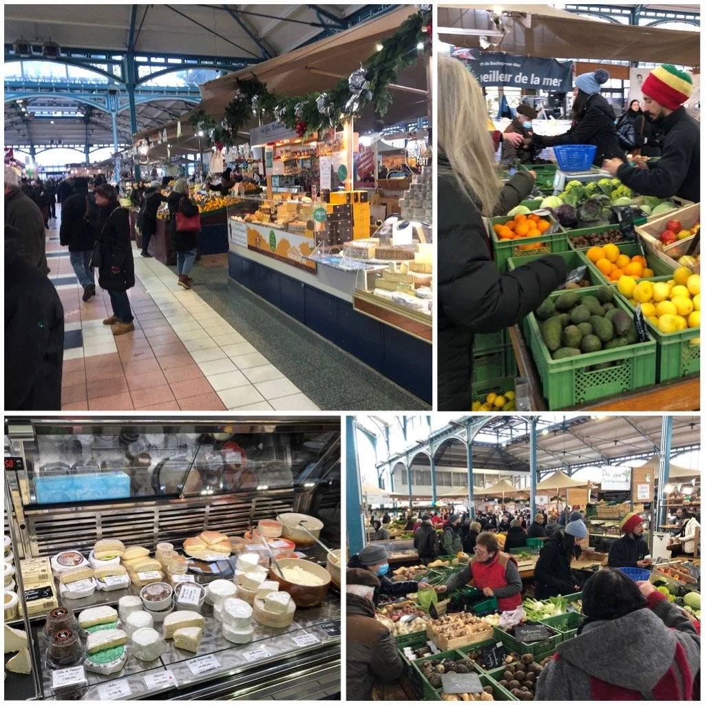 In the morning, as if we hadn’t eaten enough, we headed to the marché des halles for breakfast. I bought us a couple of pain aux raisins, and we went and found a pleasant little café to enjoy them, whilst sitting outside with a grand crème (milky coffee). Our view was of the spectacular iron and glass structure of the market. The building was inspired by the Eiffel company, but it was the plans of engineer Louis-Clément Weinberger that were used for the building, which took 5 years to build. It was opened in 1875, and is now a listed Historical Monument.
