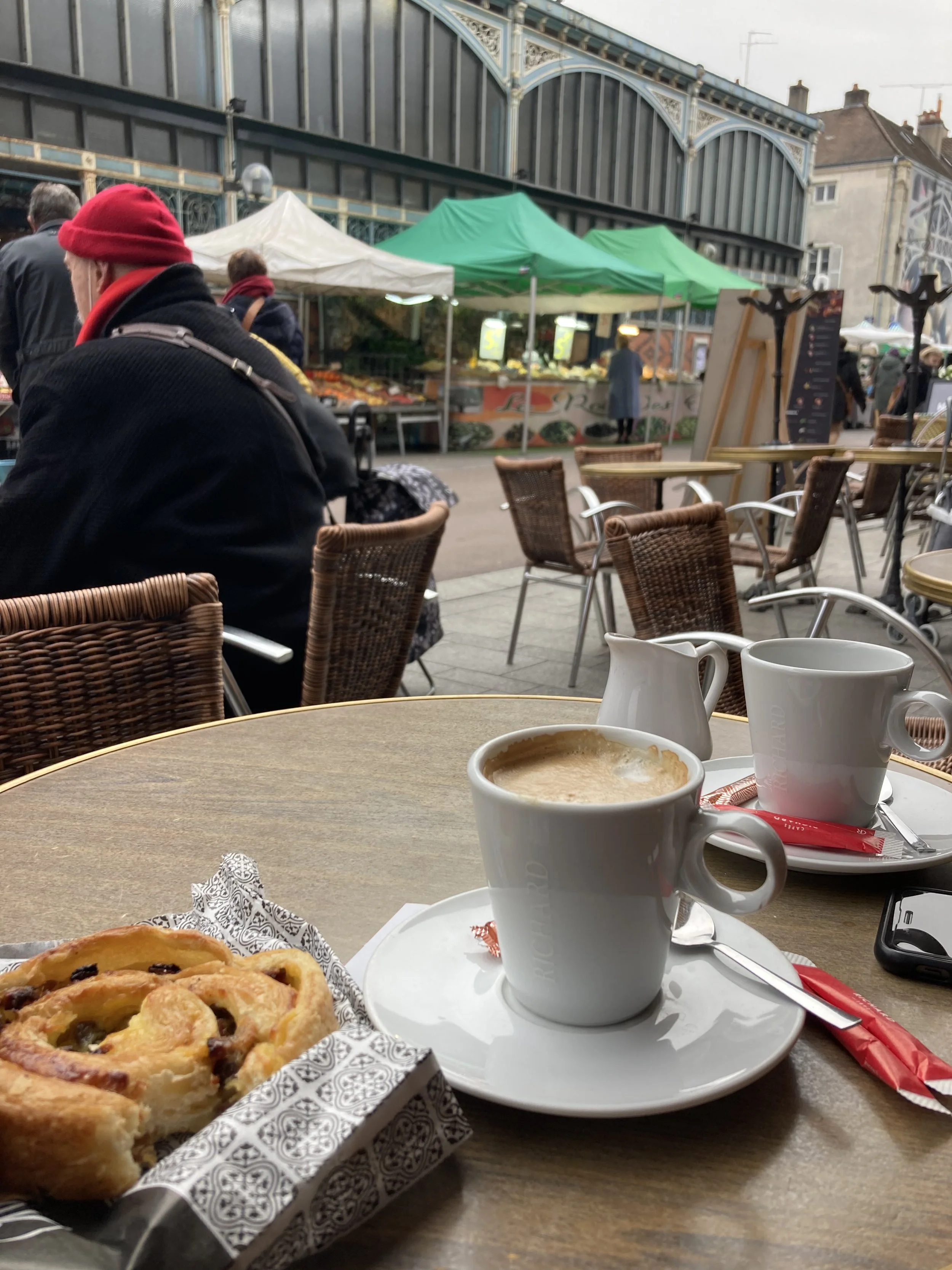 The market in Dijon is open most days, but on a Friday they also have additional local stalls around the outside. The place was full, and bustling with all sorts of people looking for something tasty to eat.