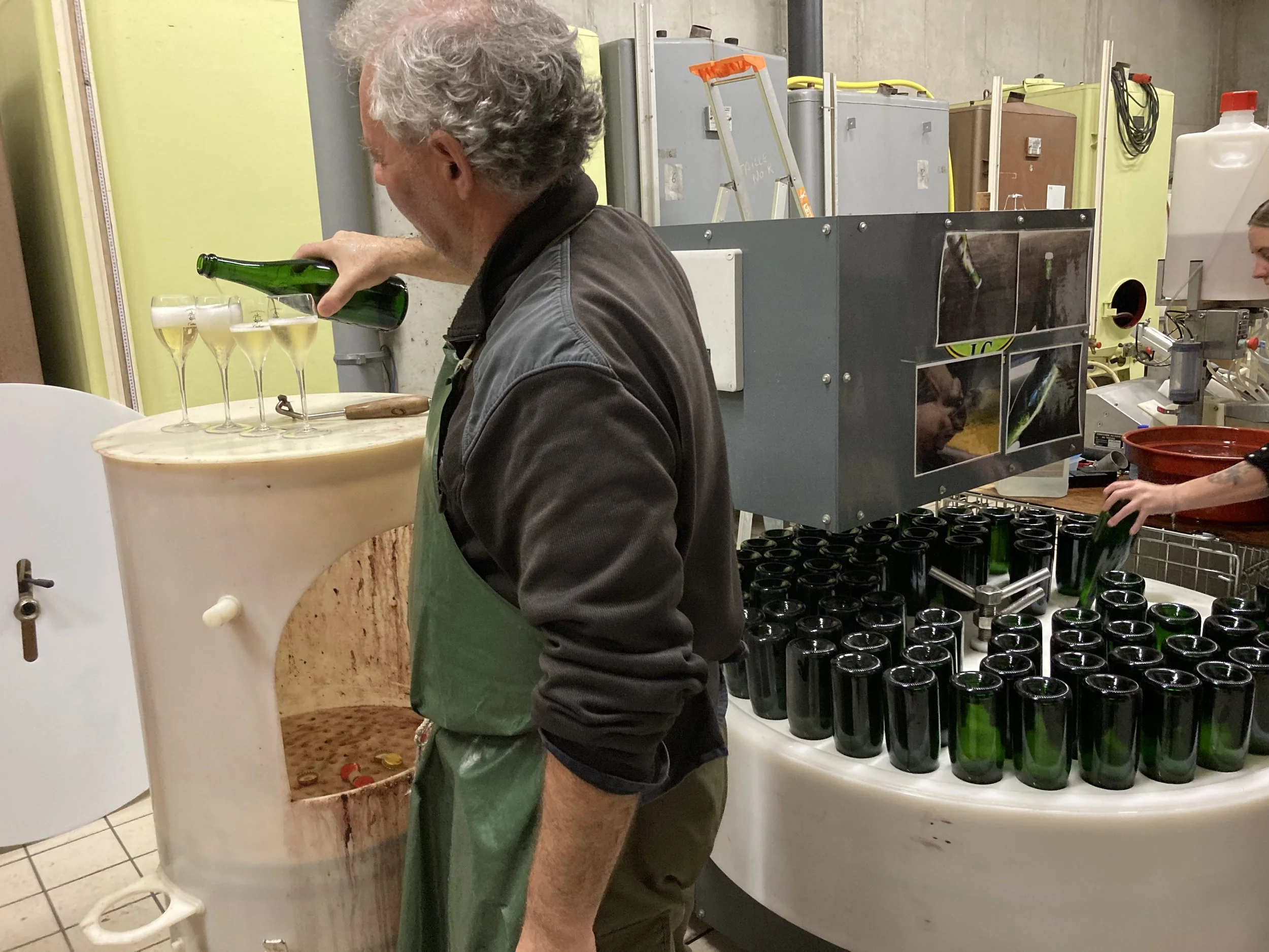 The dosage is a blend of the same wine which is mixed with a pre-decided level of sugar. This both tops up the levels in the bottle, after the frozen yeasts have been removed, and is used to create a Nature, a Brut or a Demi-sec.