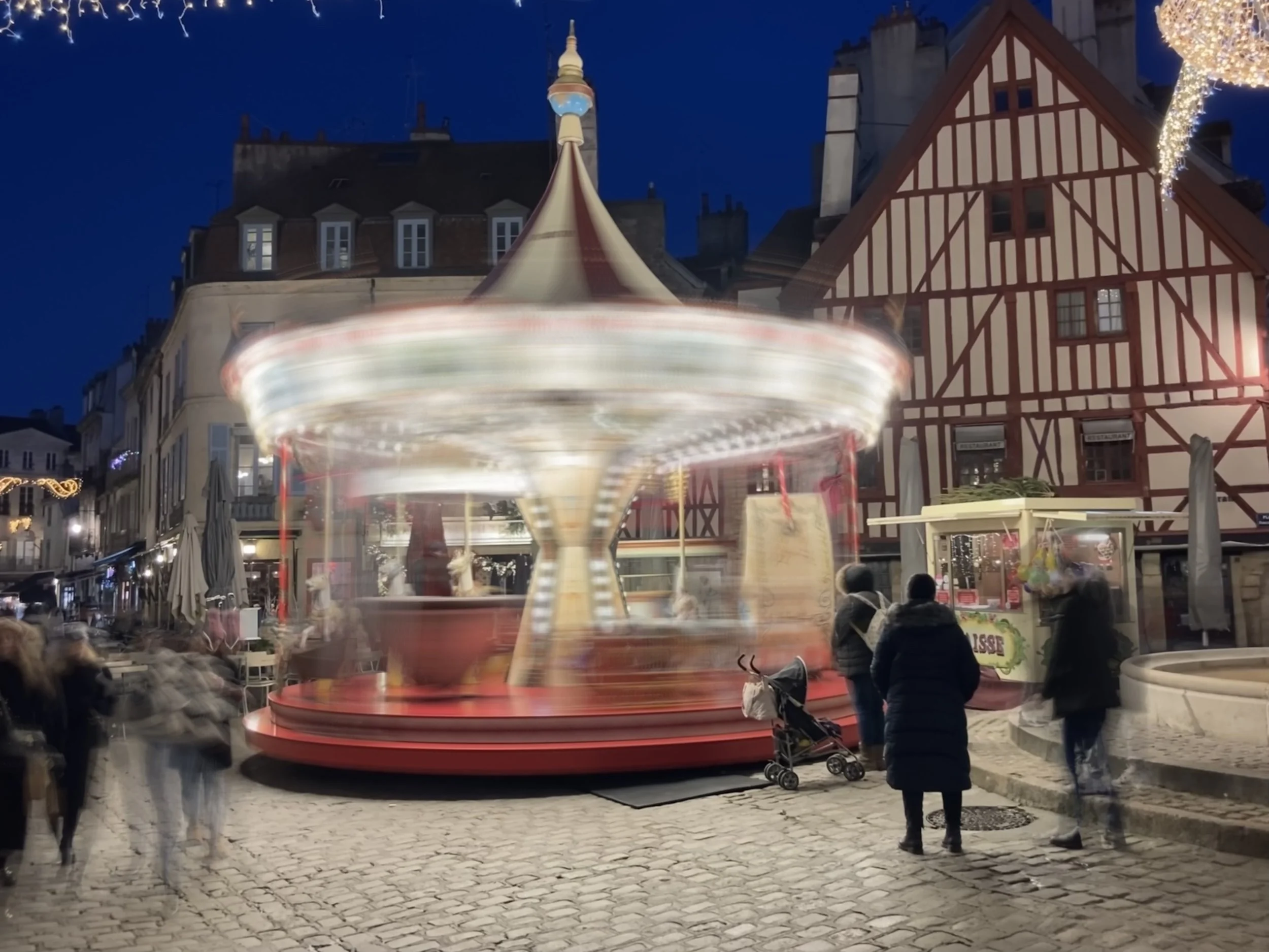 As early evening came we wandered along the cobbled streets and through the stalls of the Christmas market. They were spread out all along the Rue de La Liberté. As we walked, we discovered little pockets of festivity, with carousels, market stalls or people selling sweet treats to enjoy.