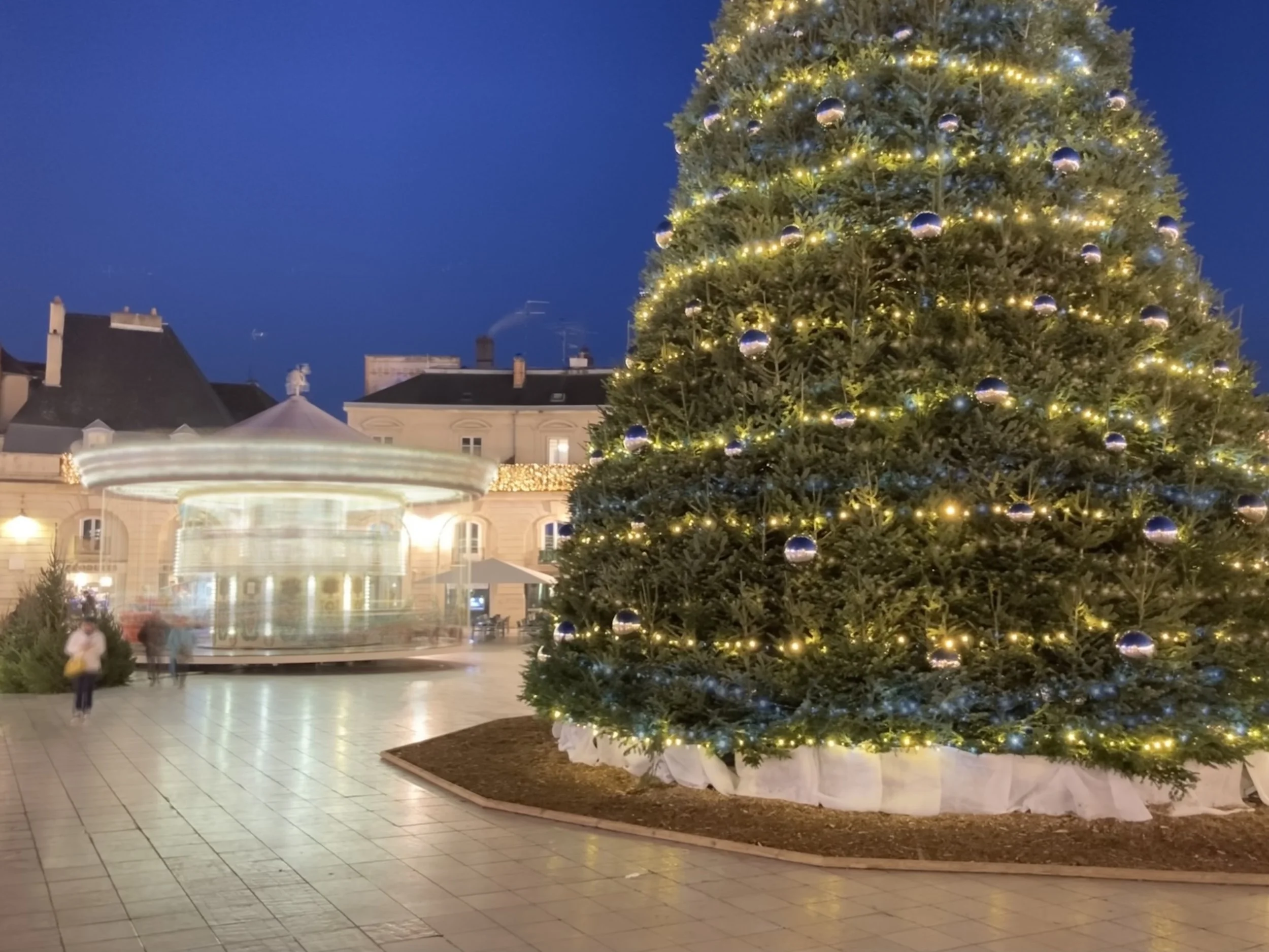 The street and its decorations were looking rather delightful, such care and thought displayed. The main tree, in the Place de La Libération, was made up of lots of smaller trees, all arranged to create the effect of a much larger, natural tree. There was a sign nearby describing that after the festive season, the trees would be chipped and put onto the green open spaces to help protect the gardens.