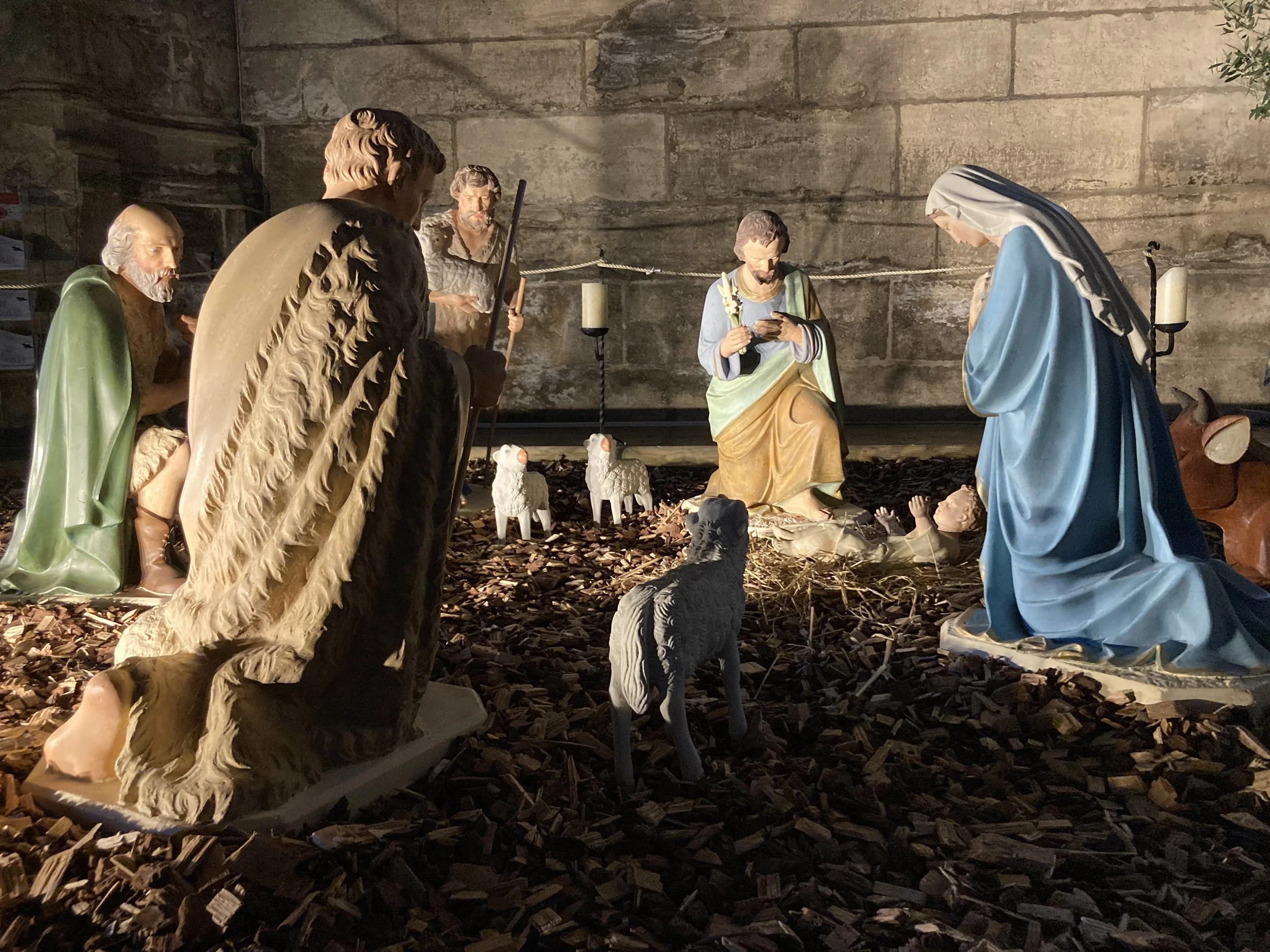 On entering you are greeted by a beautiful nativity scene, complete with a little flock of sheep.