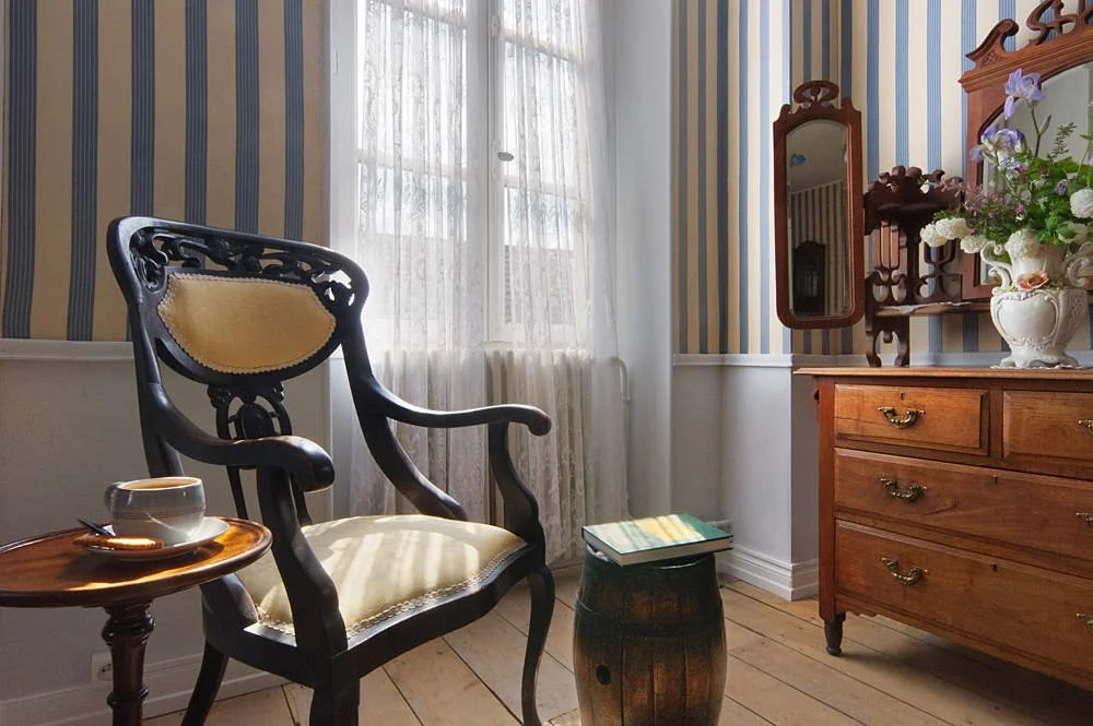 Bathed in natural light, the Jeroboam is a bright and airy three bed room, with a double bed in the main room and twin beds in the second room, leading to the beautiful modern shower room beyond. Jeroboam sleeps four, but is just as comfortable for two, with its spacious main room. Two large shuttered windows give a glorious light to this open and comfortable bedroom and its sitting area.